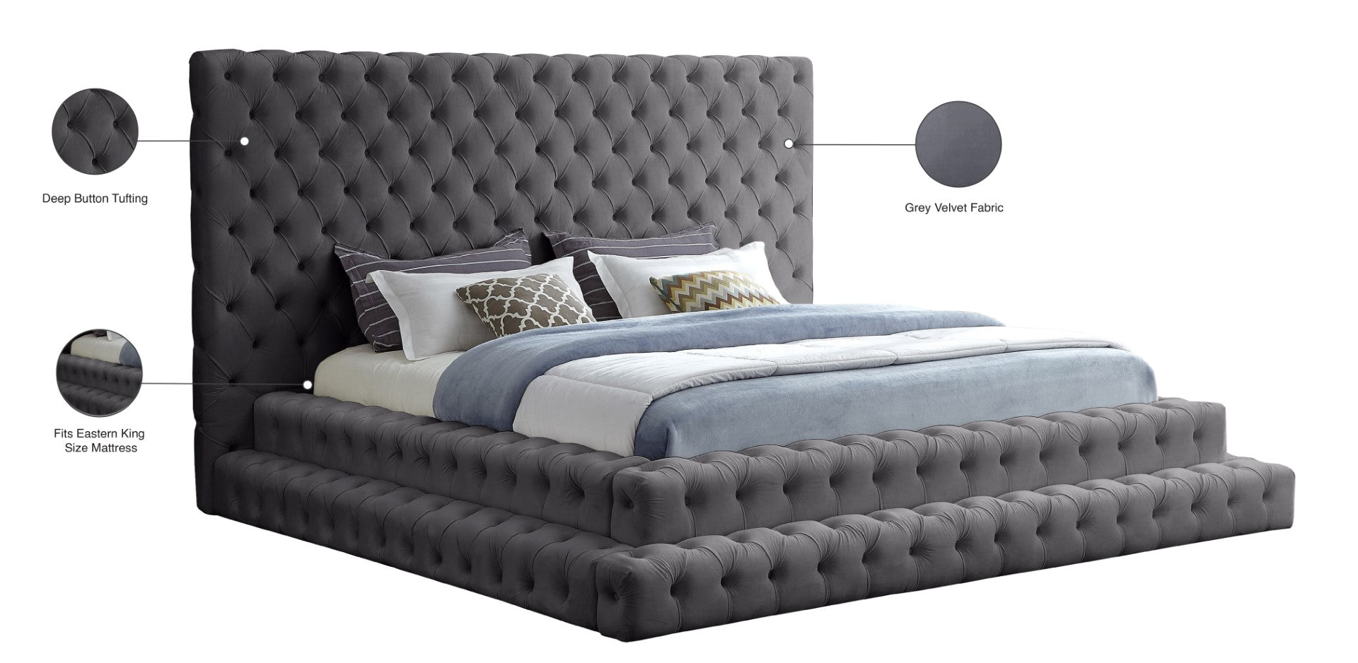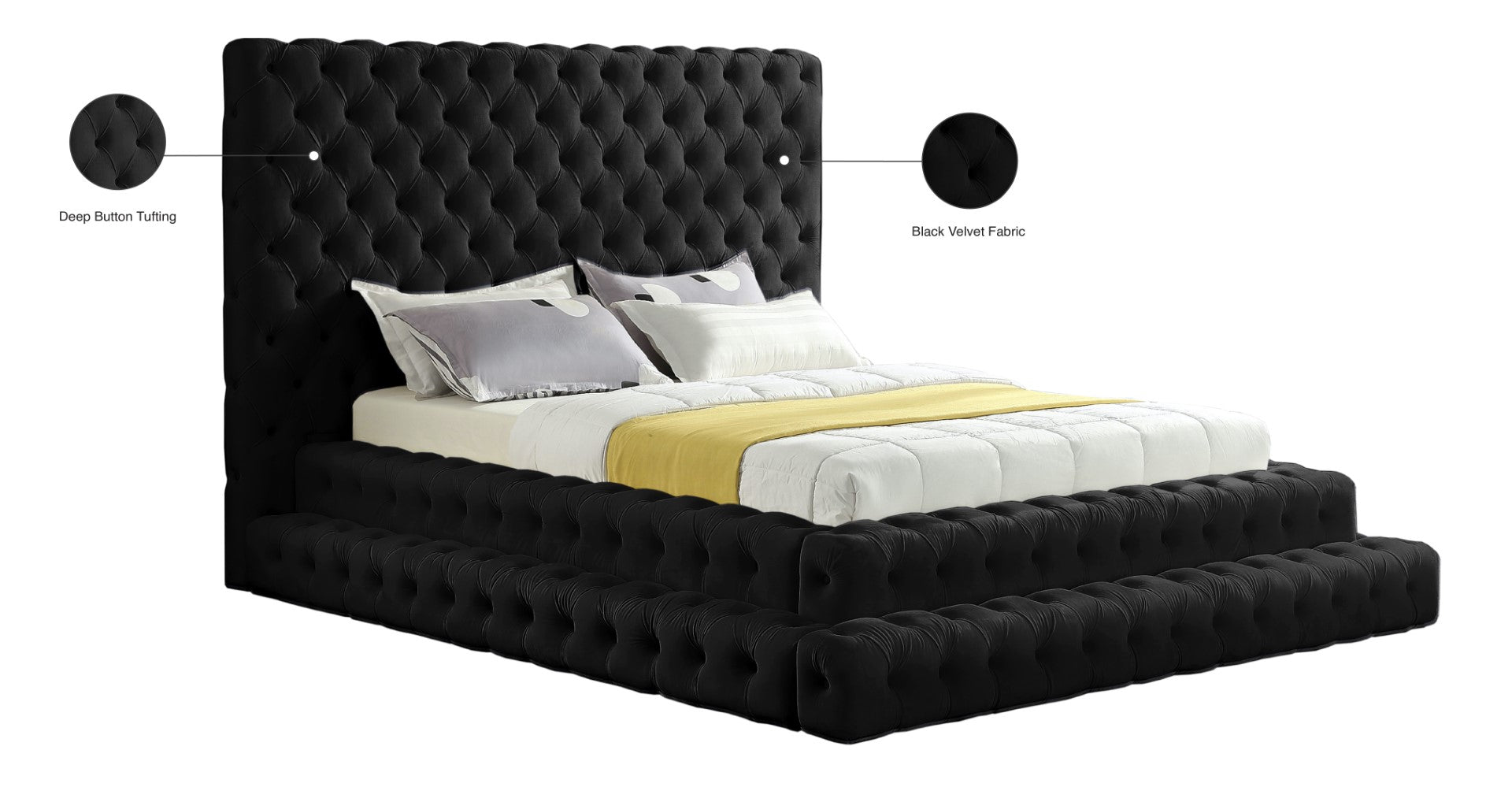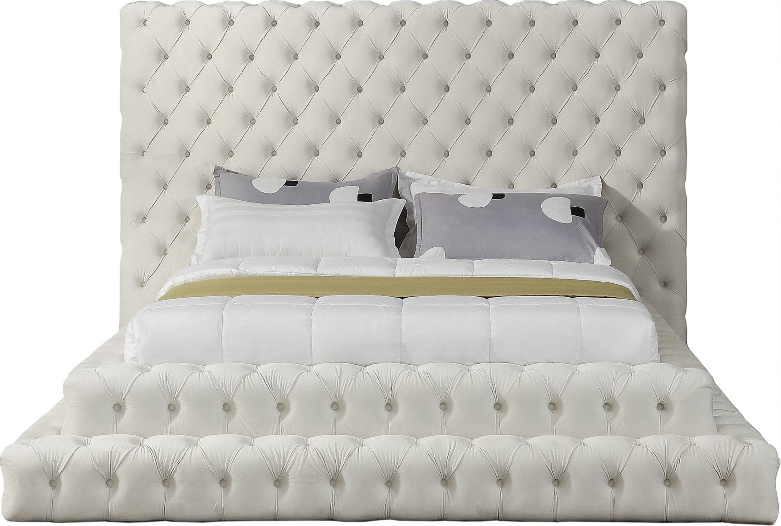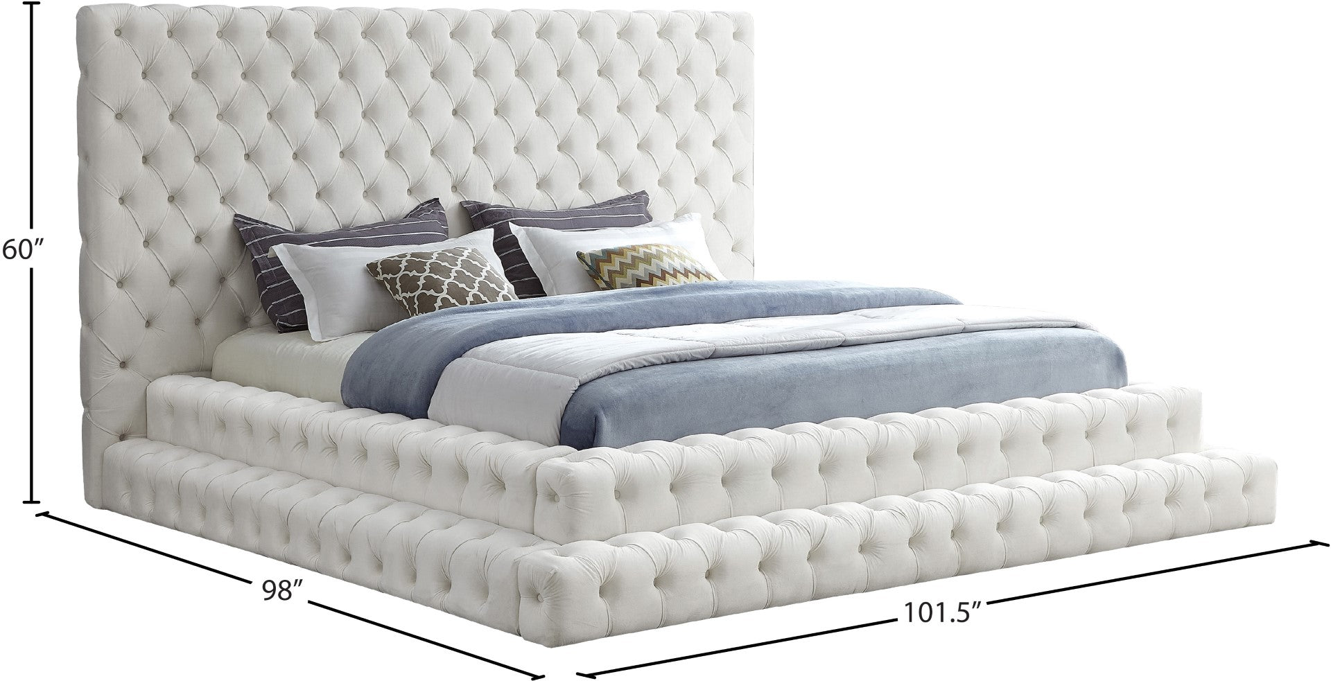 Feel like royalty when you lie down in this Revel velvet bed. This queen-size bed features soft cream velvet that covers every square inch, leaving behind a silky trail of beauty. The true star of the show is the deep button tufted design and extra-tall headboard, both of which serve to make this a bed fit for a queen (or king). A staggered, layered design adds to the bed's dramatic look in your room.