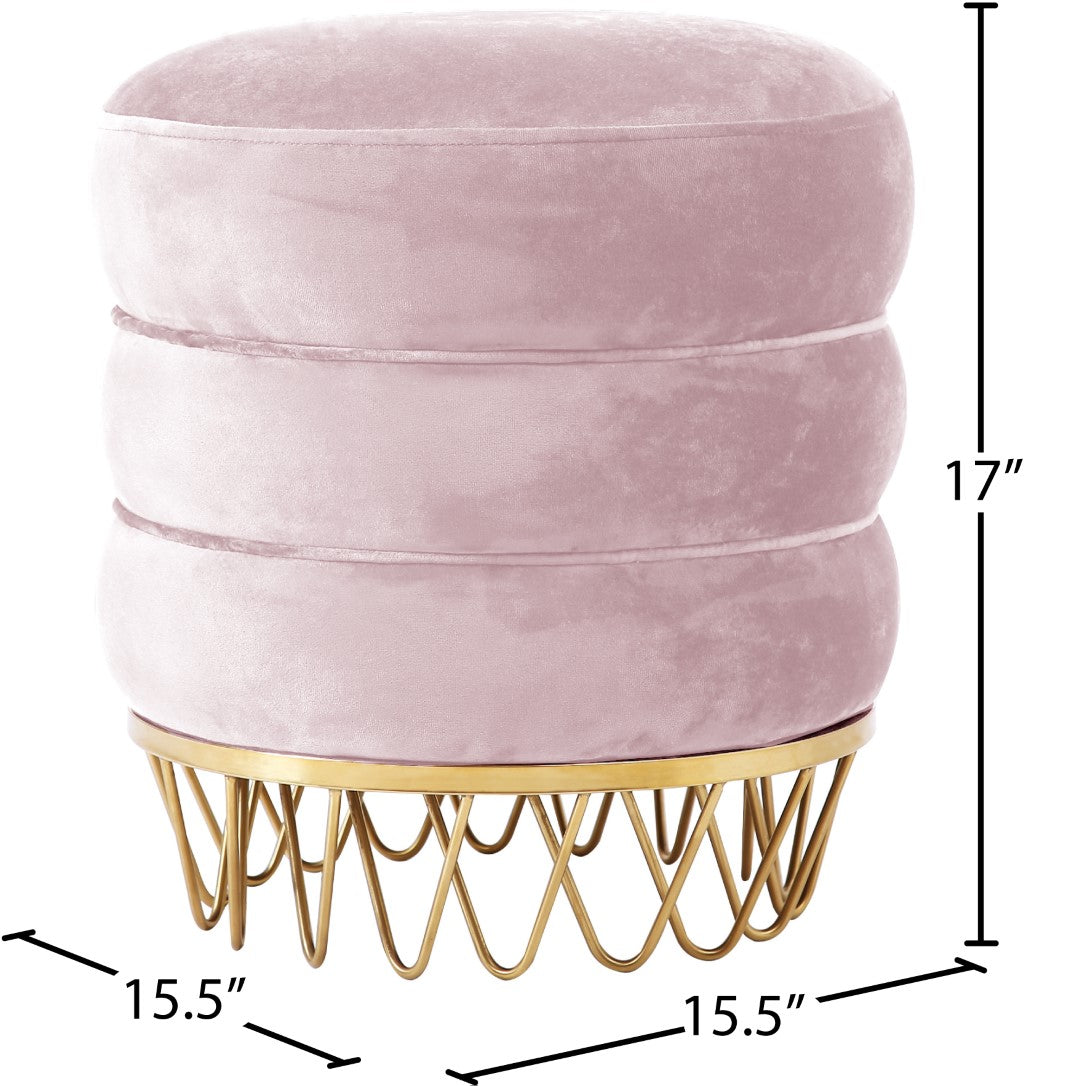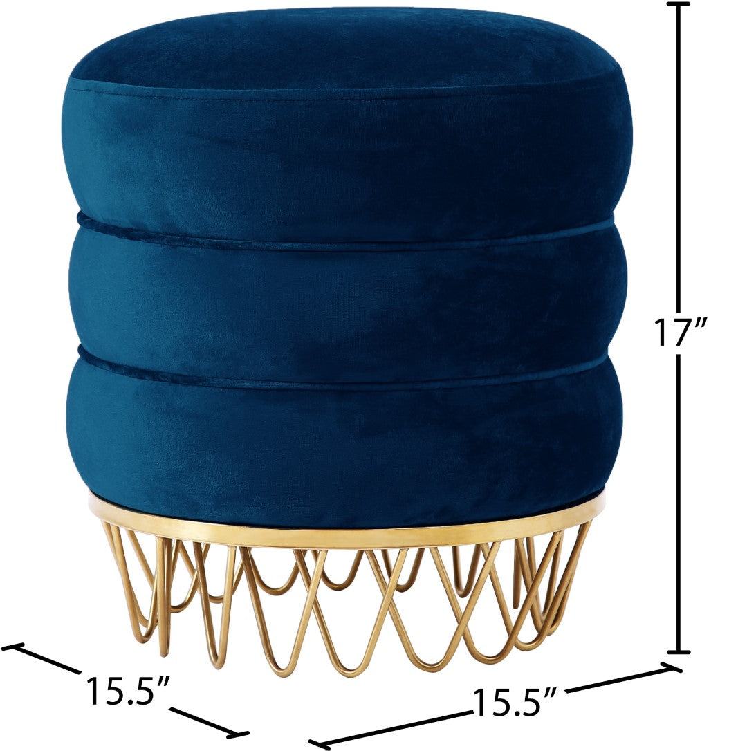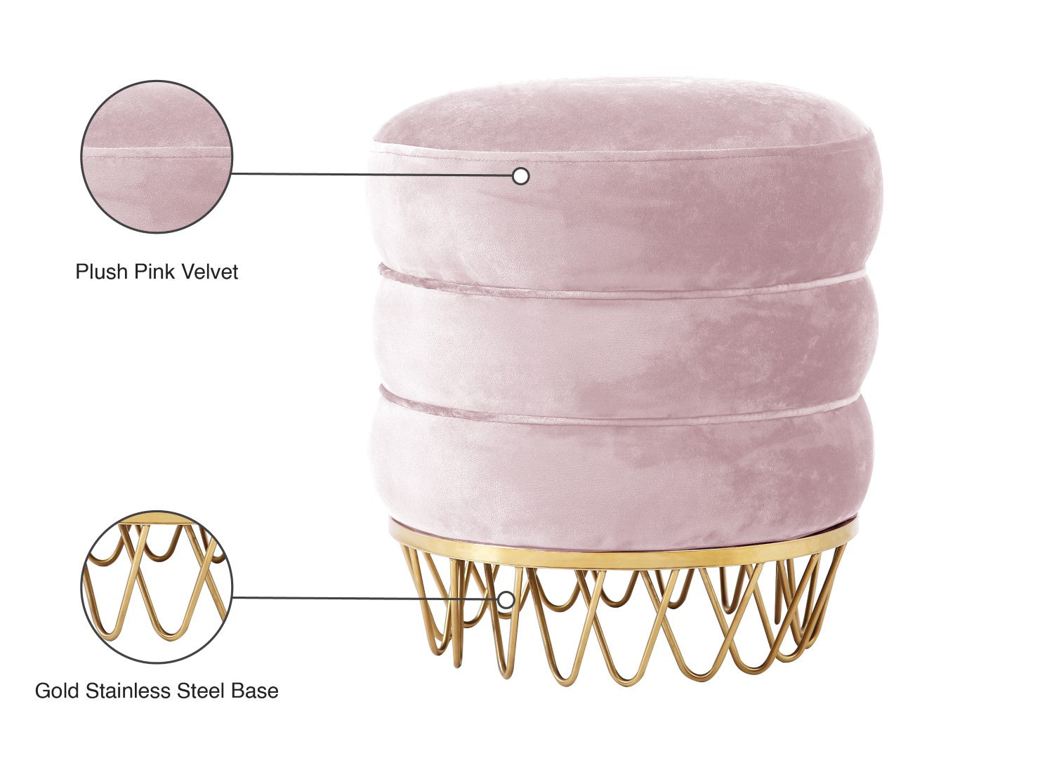 Revolve Plush Black Velvet Ottoman with Gold Stainless Steel Base - Stylish Contemporary Accent Piece