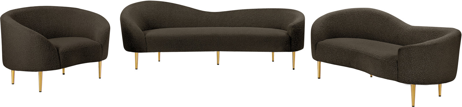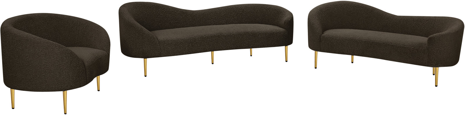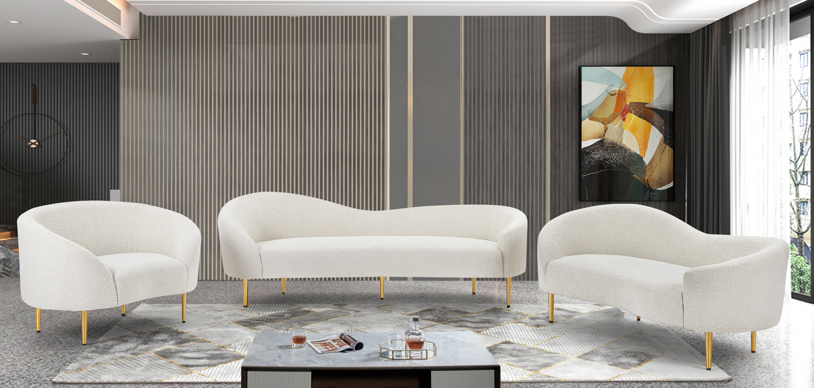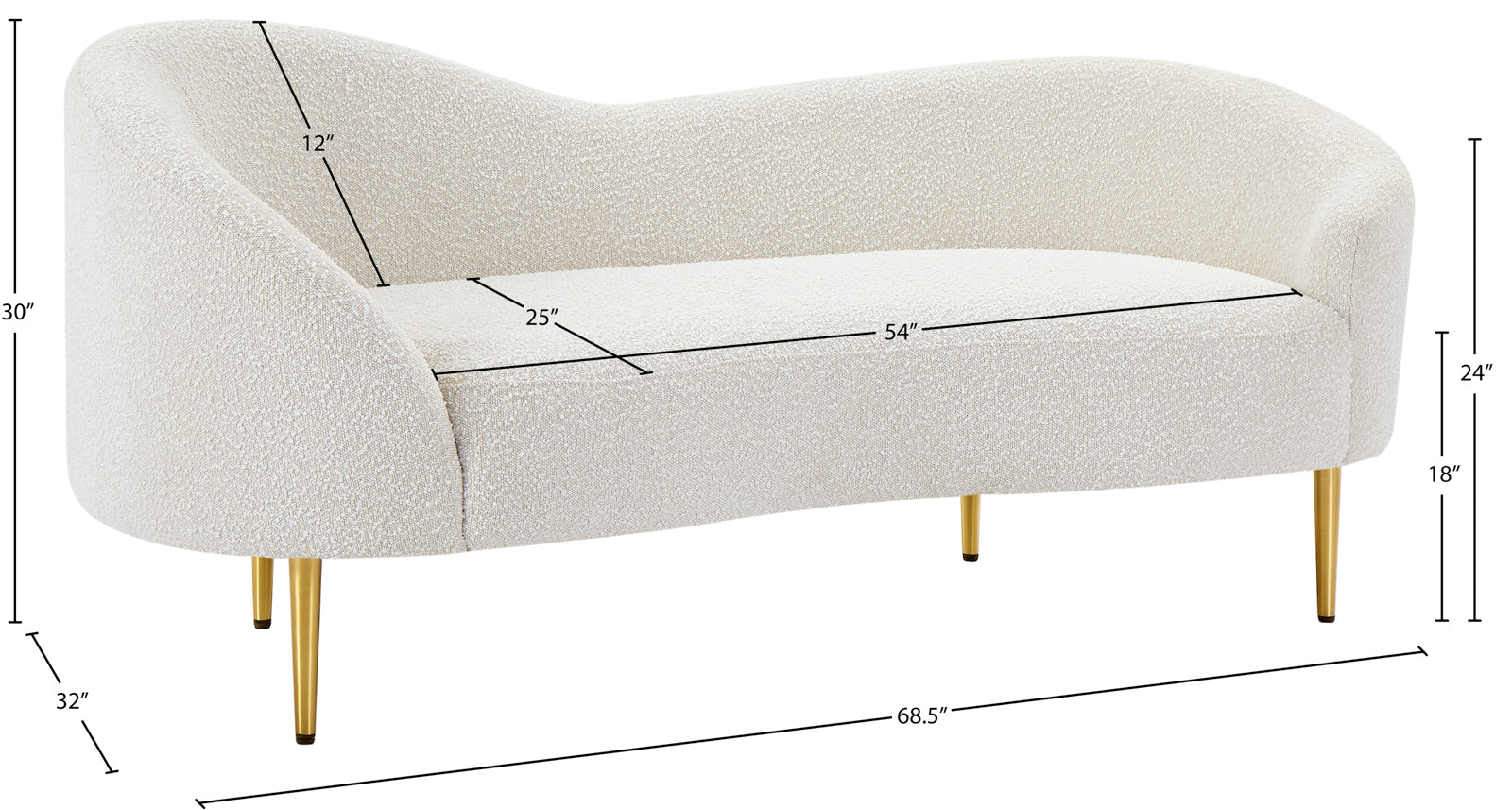 Ritz Boucle Fabric Loveseat - Elegant Comfort with Gold Metal Legs for Modern Living Spaces
