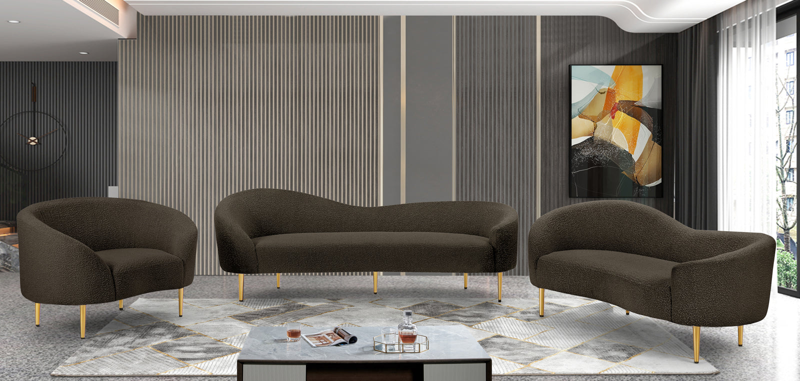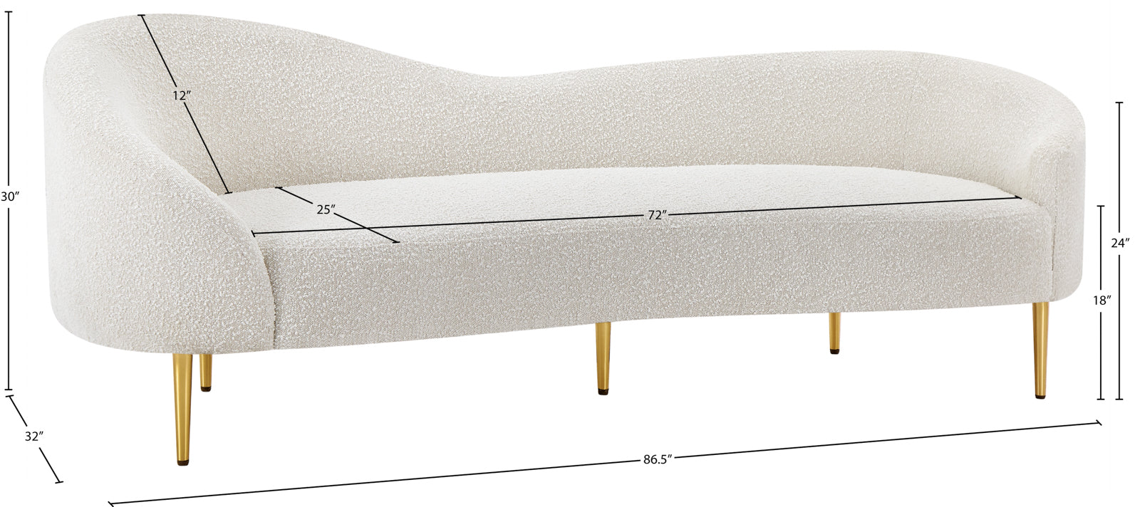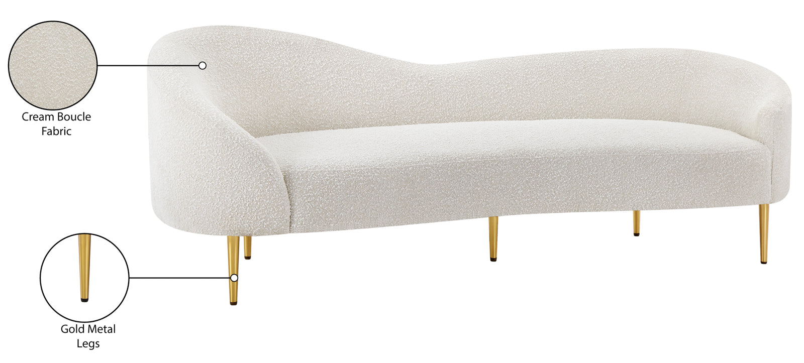 Ritz Boucle Fabric Sofa – Chic Elegance with Gold Metal Legs for Modern Living Room Style & Comfort