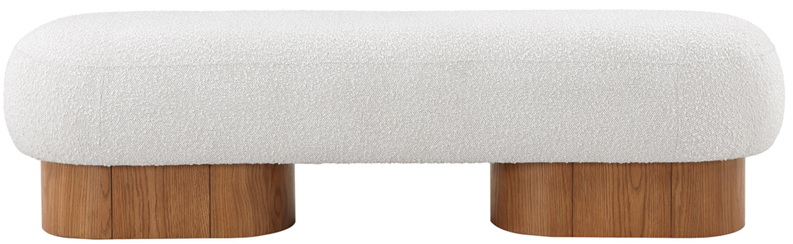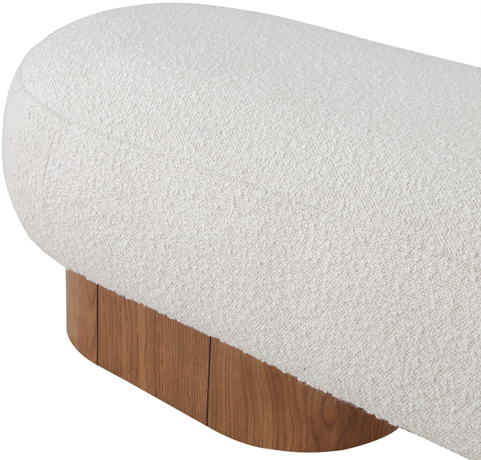 Robertson Cream Boucle Fabric Bench - Luxurious Art Deco Design with Walnut Finish for Modern Elegance