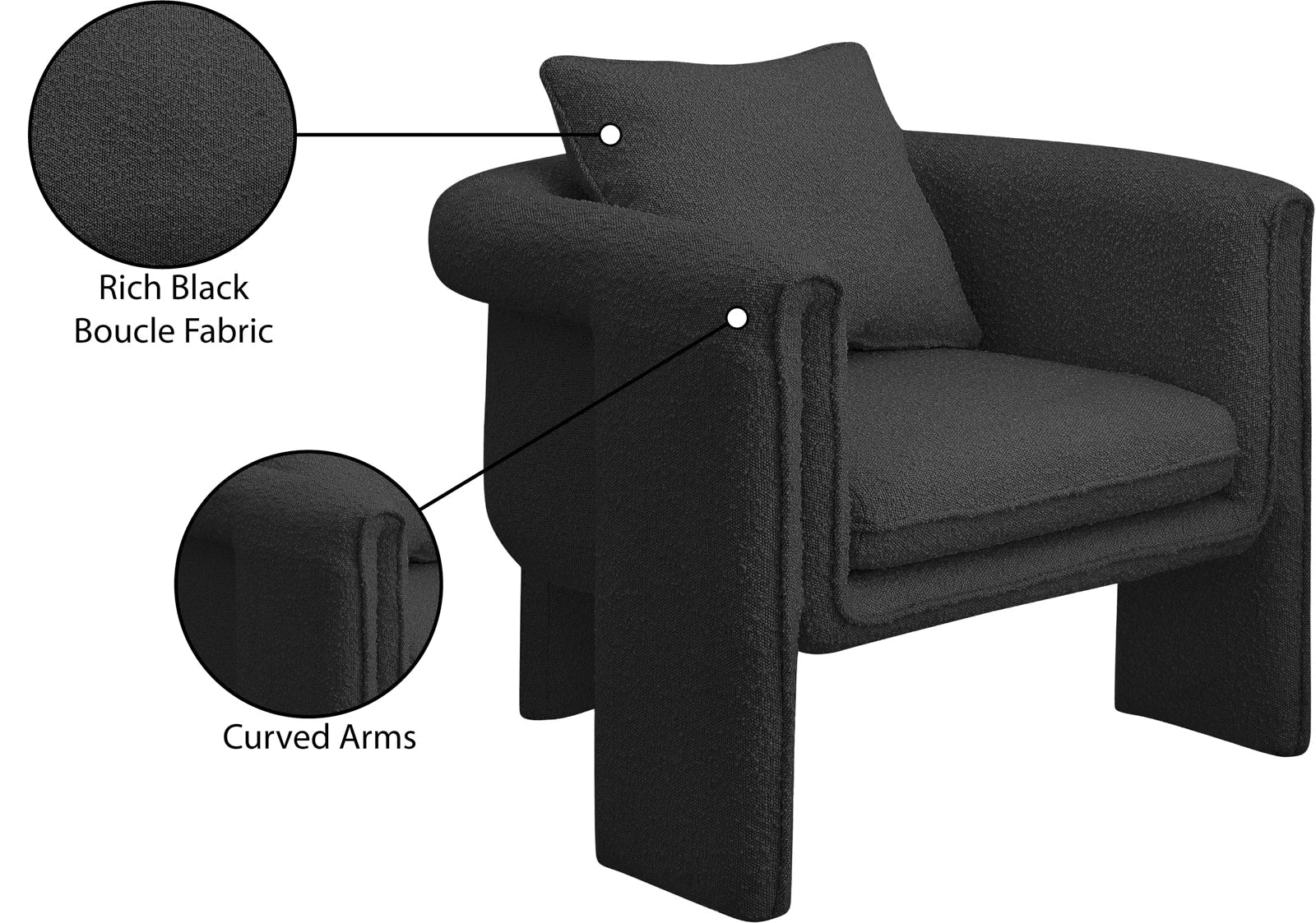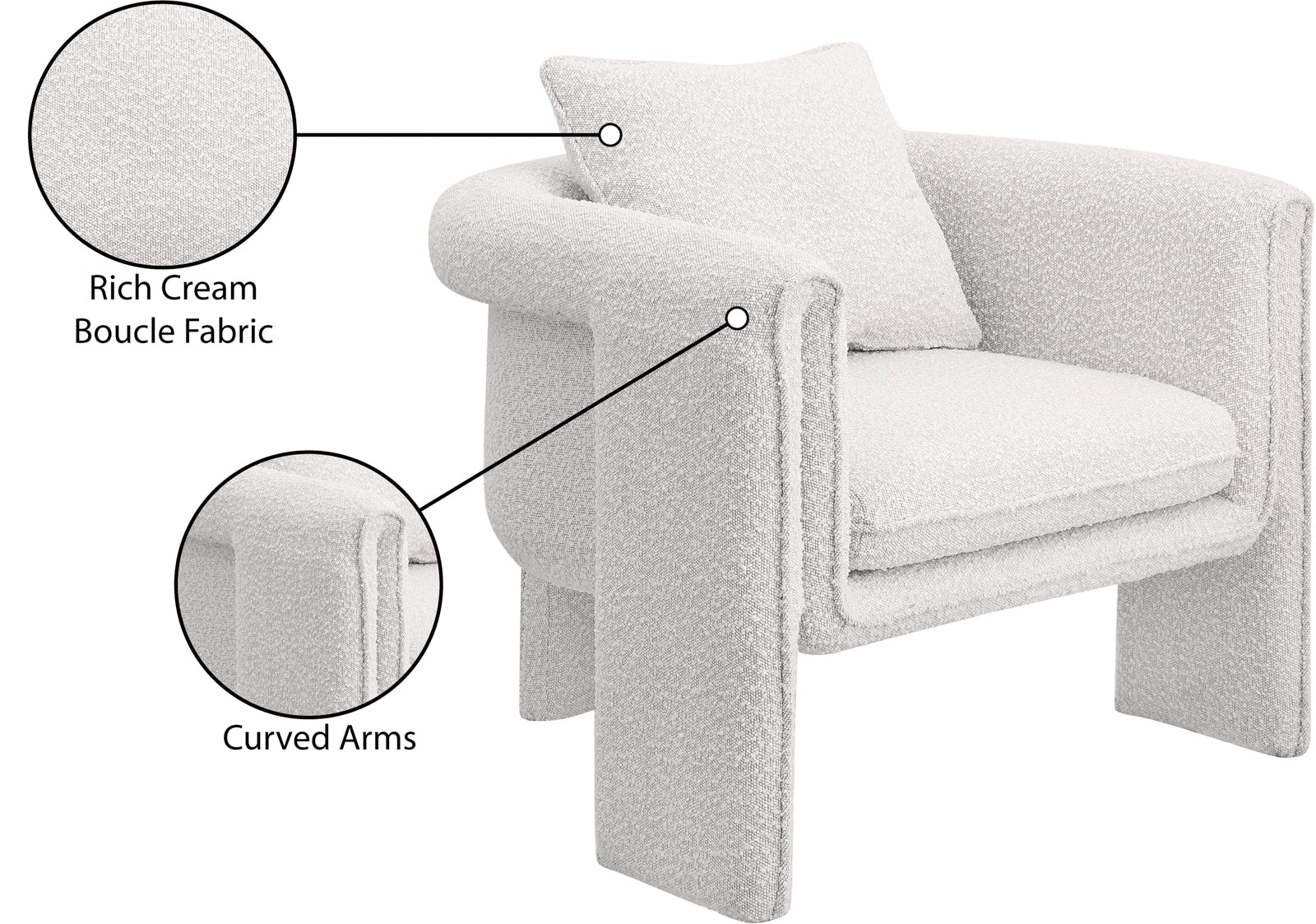 Stylus Boucle Accent Chair - Modern Comfort with Plump Cushions and Stylish Curved Arms for Any Room