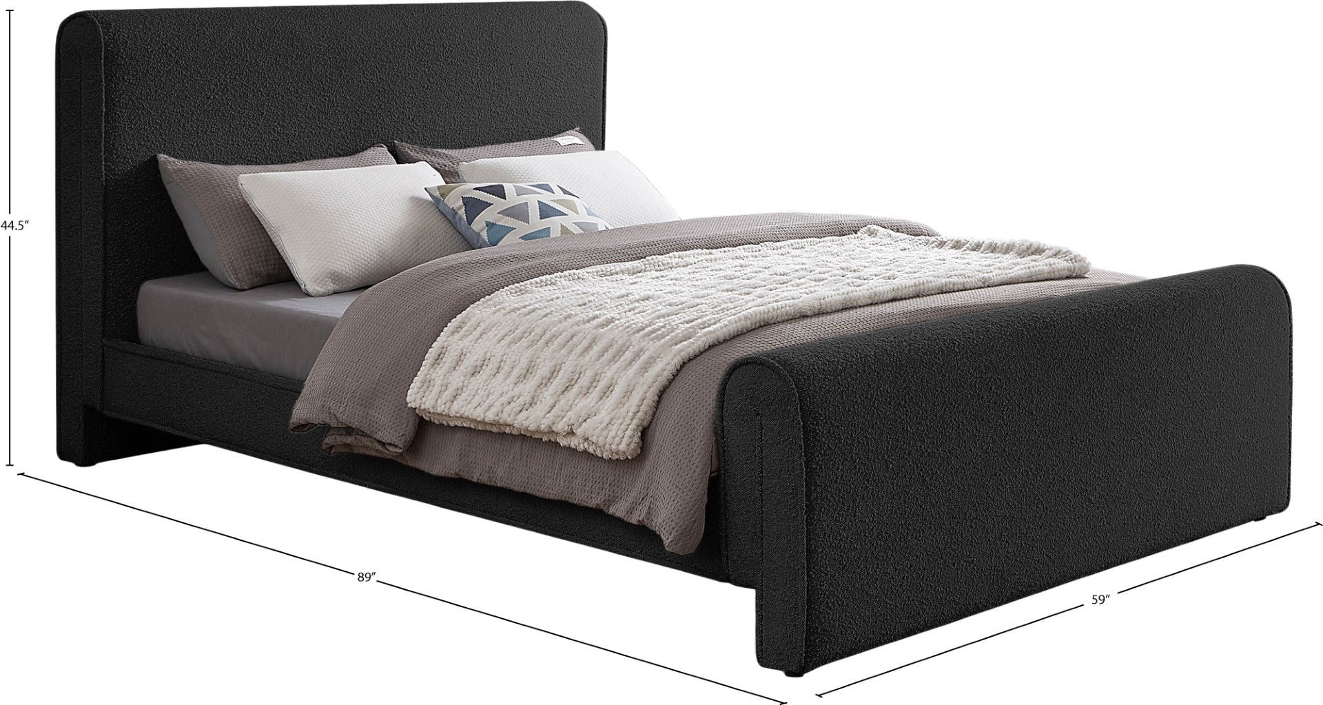 Feature 1: Rich Black Boucle Fabric Feature 2: Curved Headboard and Footboard Feature 3: Headboard Height 44.5" Feature 4: Footboard Height 22.8"...