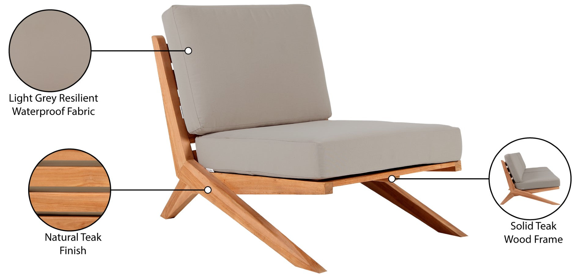 Tahiti Waterproof Fabric Outdoor Chair - Durable Teak Design for Ultimate Patio Comfort and Style