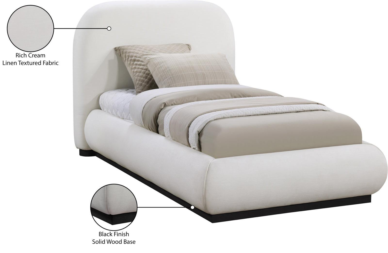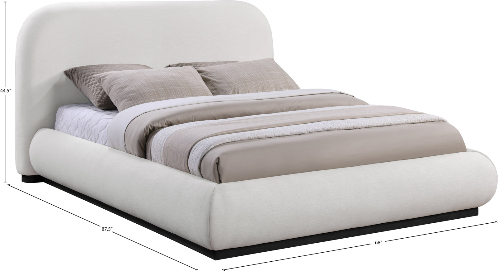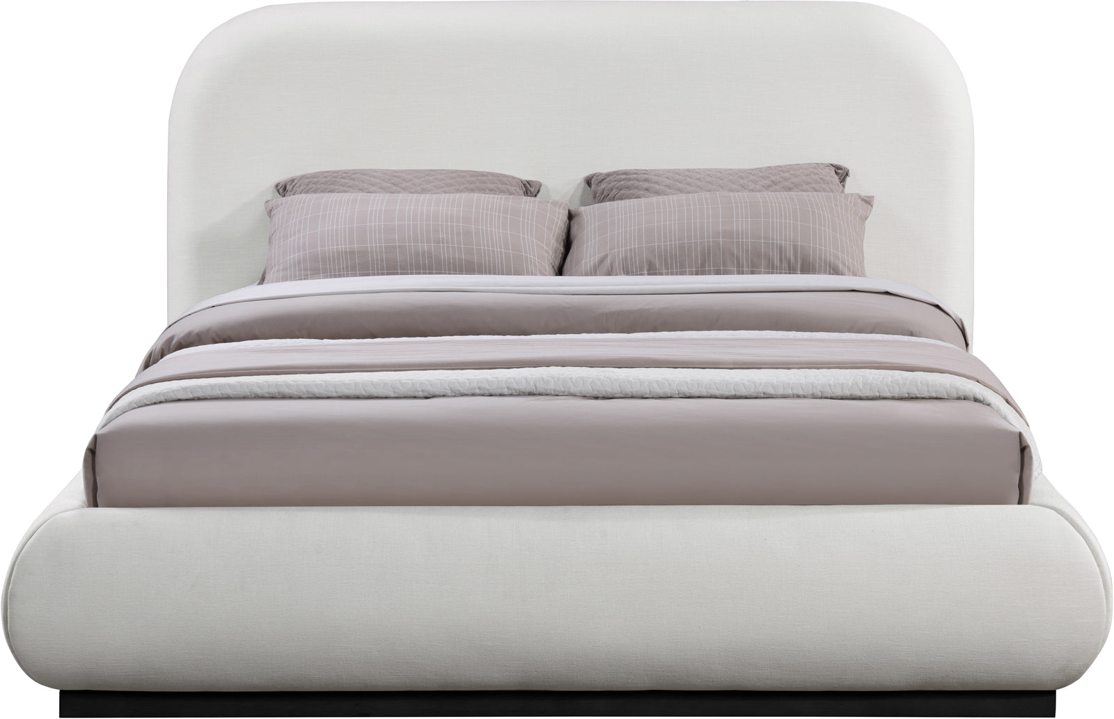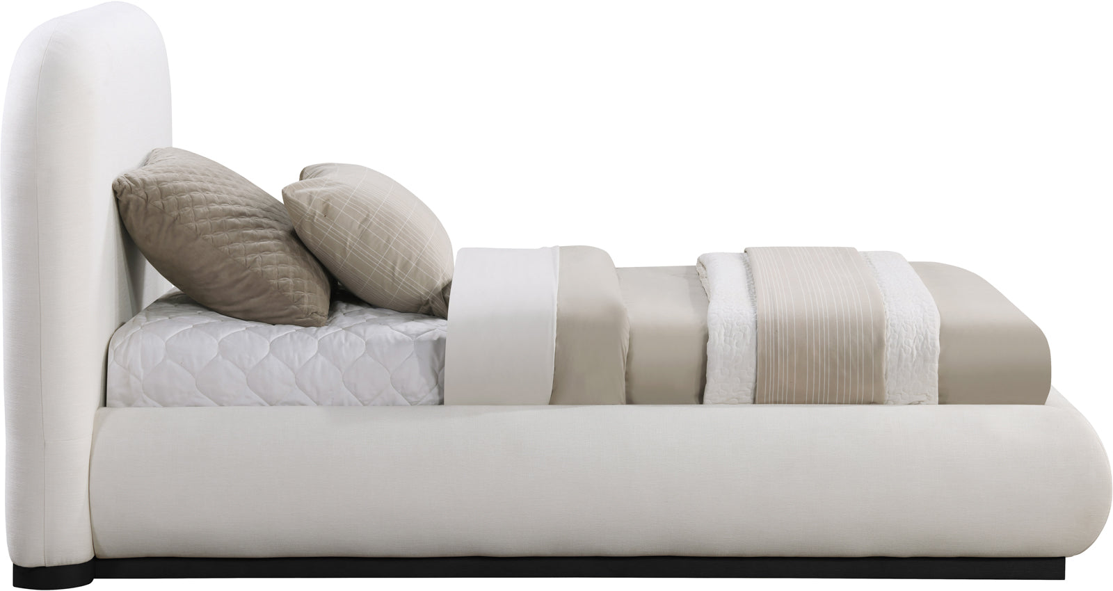 Vaughn Cream Bed - Cozy Linen Textured Fabric with Sturdy Black Wood Base for Ultimate Comfort