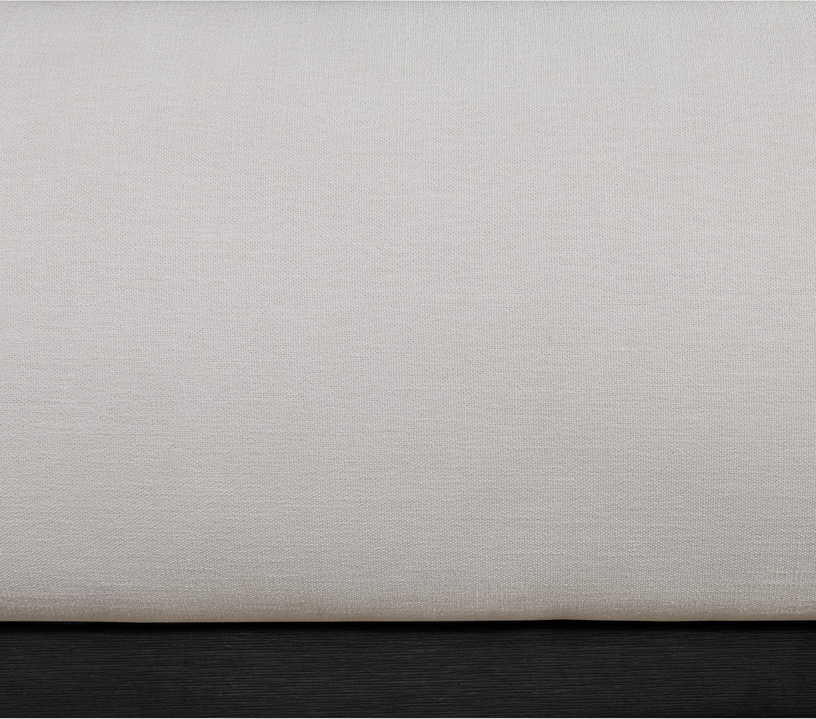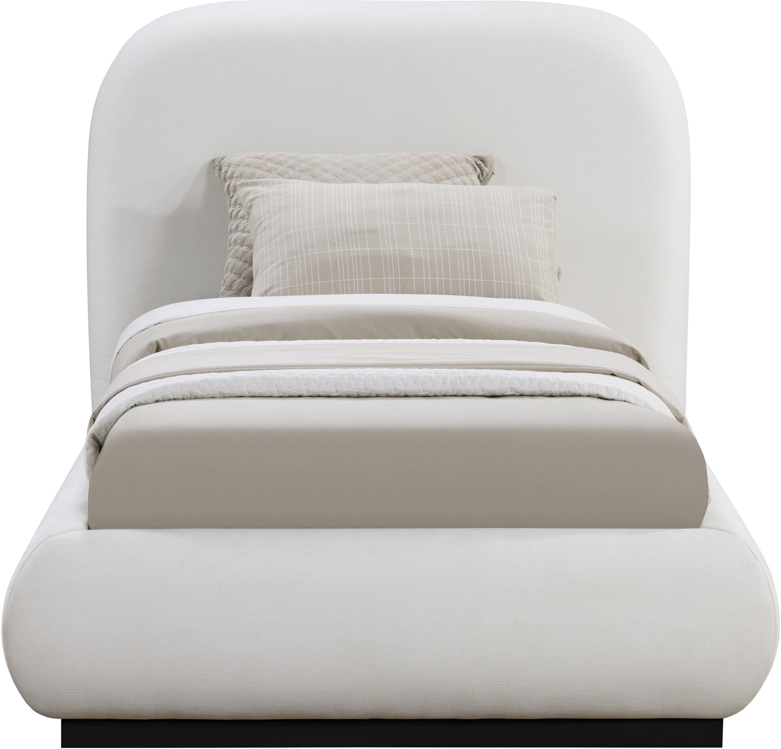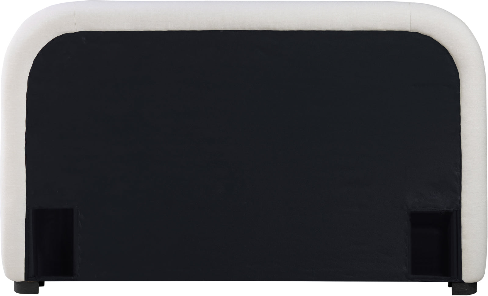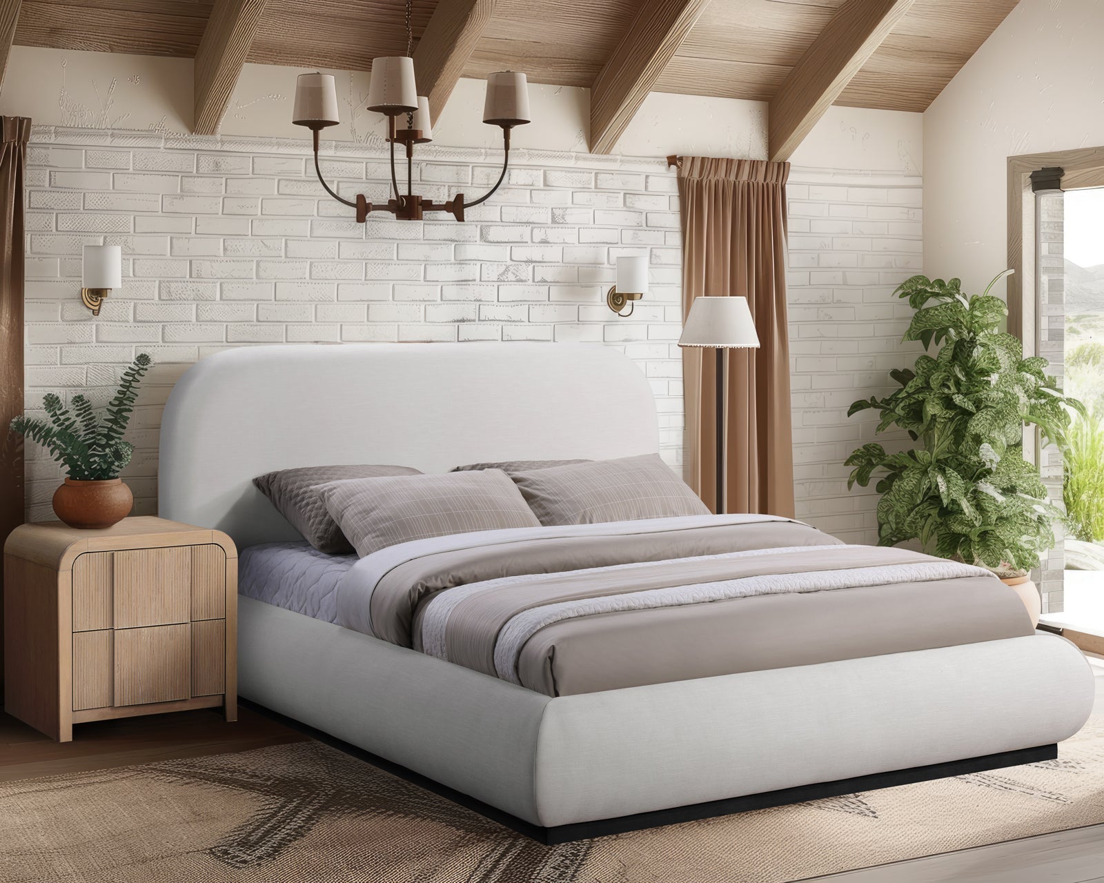 Vaughn Cream Bed - Cozy Linen Textured Fabric with Sturdy Black Wood Base for Ultimate Comfort