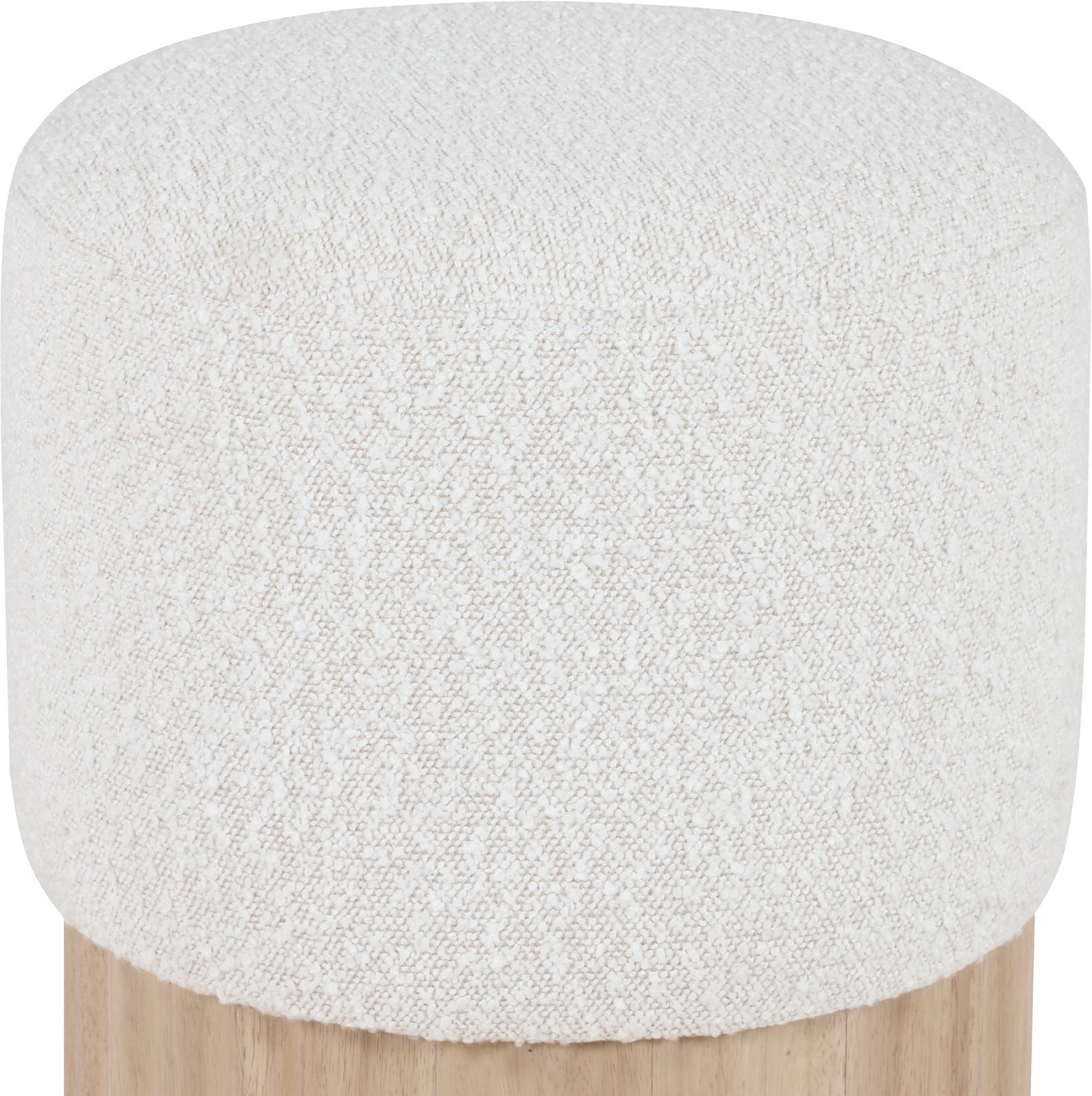 Indulge in the luxurious texture of the Veranda Boucle Fabric Ottoman/Stool. It boasts a rich black boucle fabric that is paired with an elegant and sturdy solid wood base, featuring a natural finish that highlights the beautiful wood grain patterns. This unique combination of materials creates a perfect blend of style and durability, making it an ideal addition to any modern or traditional interior design.