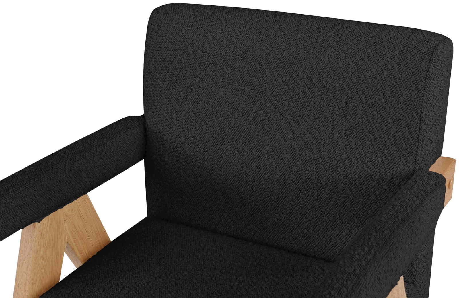 Add a touch of modern comfort to your space with this Woodloch boucle fabric accent chair. Upholstered in rich black boucle fabric...