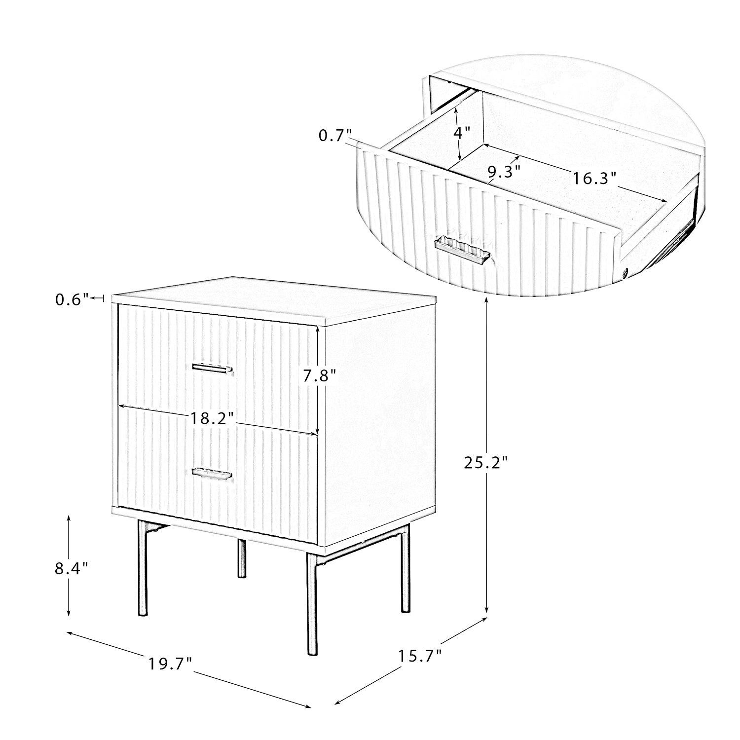 Bring a dramatic focus to any room with this charming nightstand. With a boxy silhouette, it's understated and suitable for all decor palettes. Color and textural variations create a relaxed feel that is enhanced by a neutral finish on its sturdy manufactured wood frame. Two pull-out standard drawers with pleated surfaces add a hint of elegance, providing various storage spaces to conceal annoying clutter while boasting contemporary glamors. Designed to bring you exceptional value, it helps you to create a functional living room, dining room, or bedroom storage options.