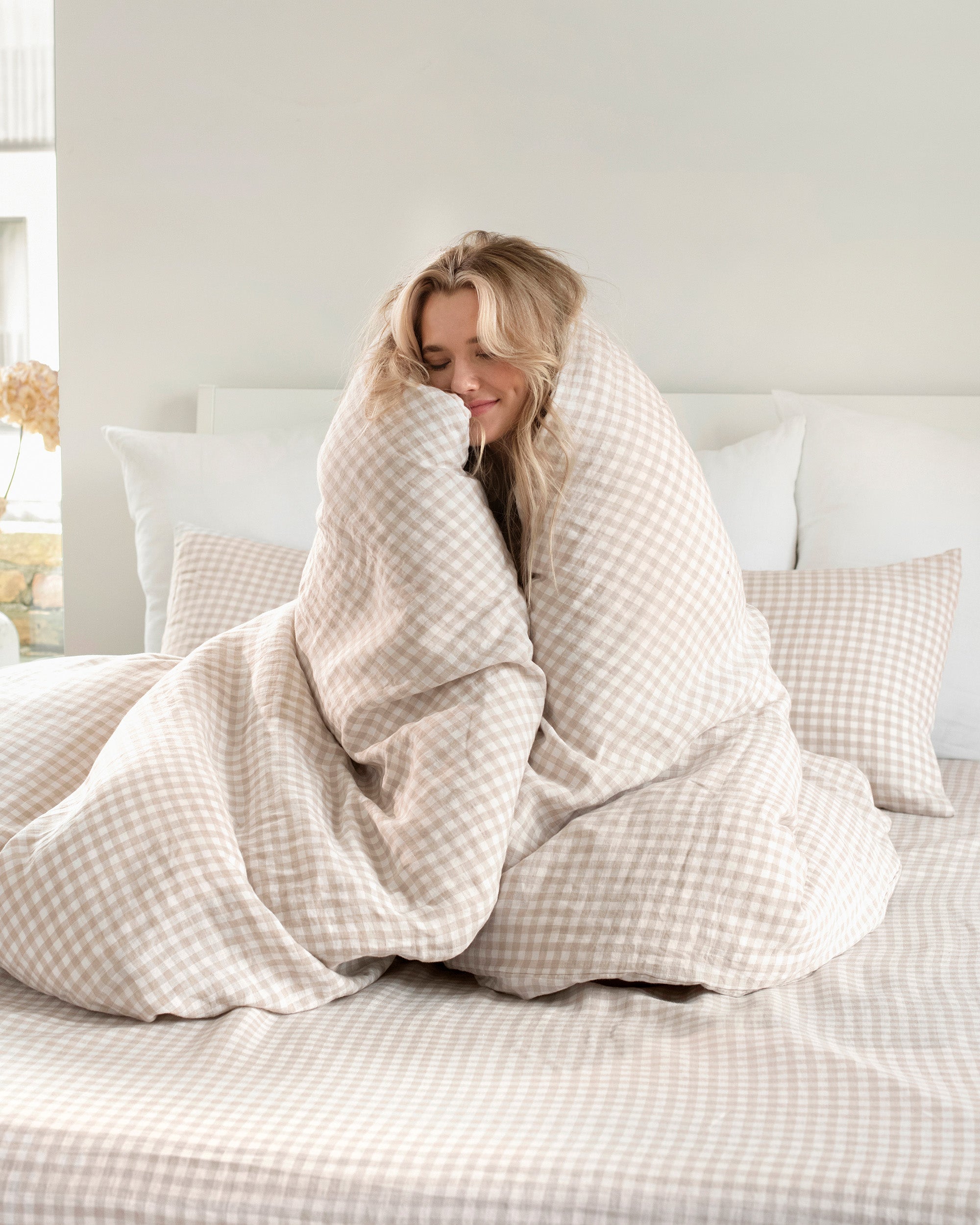 Linen duvet cover in natural gingham. Add coziness to your bedroom and improve your sleep with our linen duvet covers that are soft, highly breathable, and hypoallergenic. The natural properties of linen guarantee the feeling of comfort all year round.