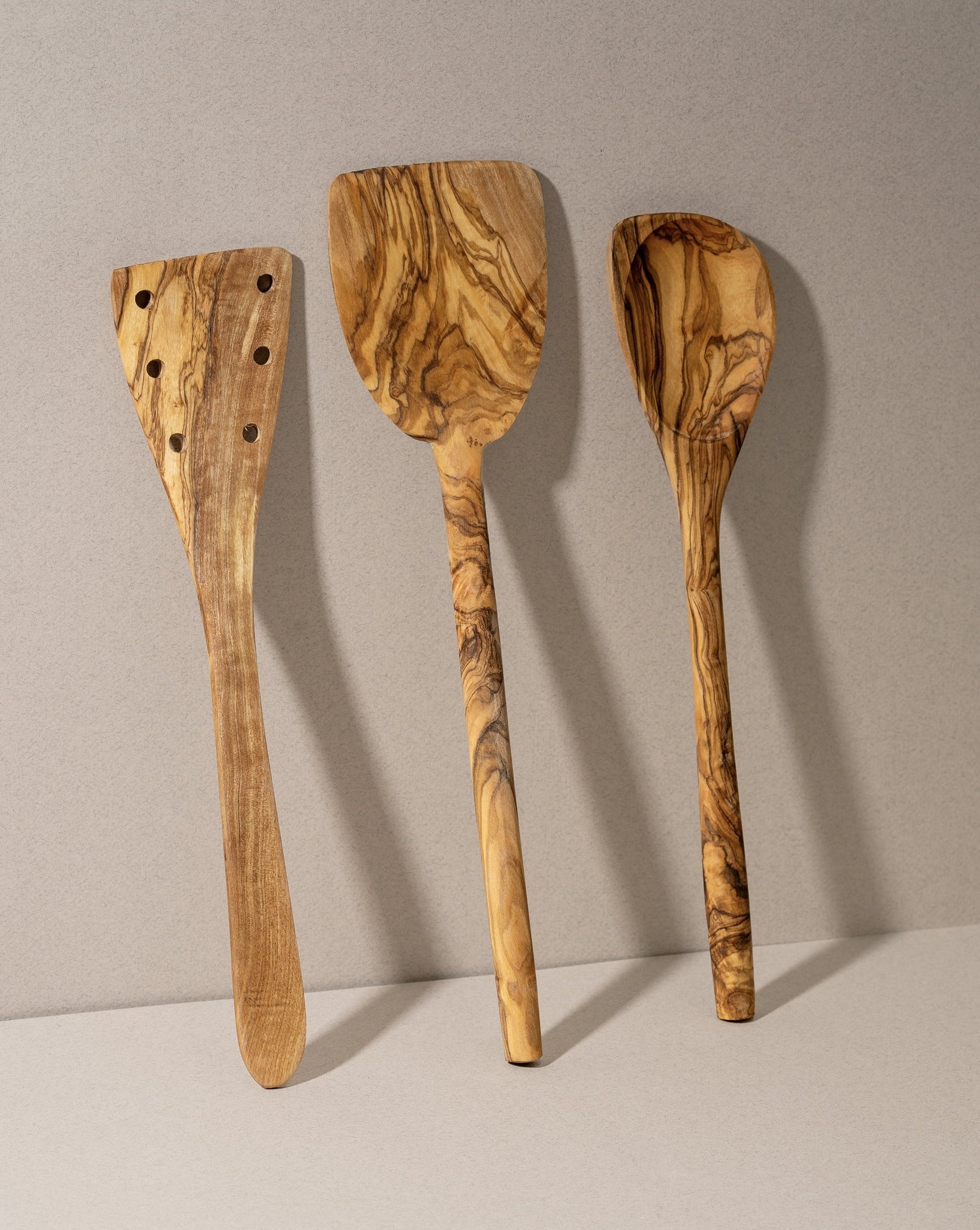 Elevate your culinary experience with our exquisite olive wood utensil set—handcrafted with precision and care. Each spatula, flipper, and spoon is a testament to artisanal craftsmanship, offering both beauty and functionality to your kitchen.