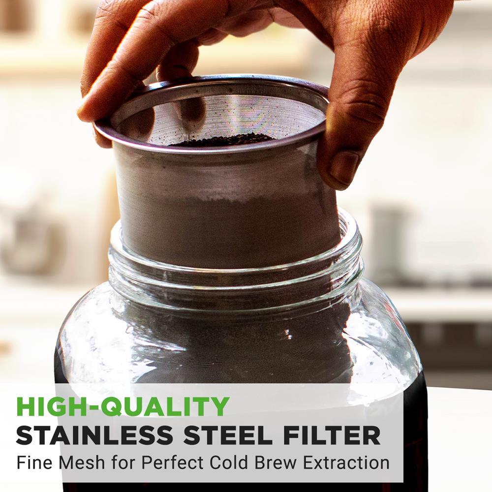 1 Gallon Glass Cold Brew Coffee Maker With Stainless Tap And Spigot Metal Lid Filters