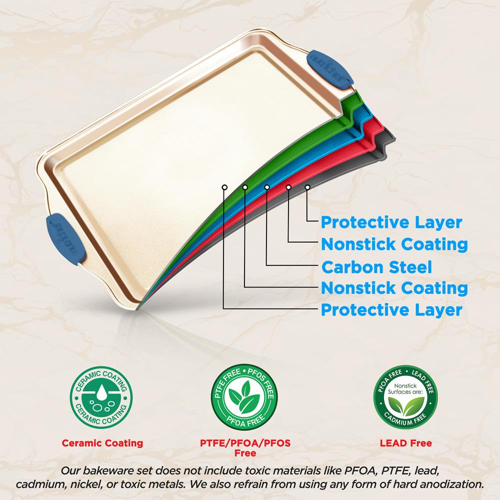 DETAILS Features: Flexible & Nonstick Carbon Steel Bakeware Set With Blue Silicone Handles Professional Home Kitchen Bake Pan Set Commercial Grade Restaurant...