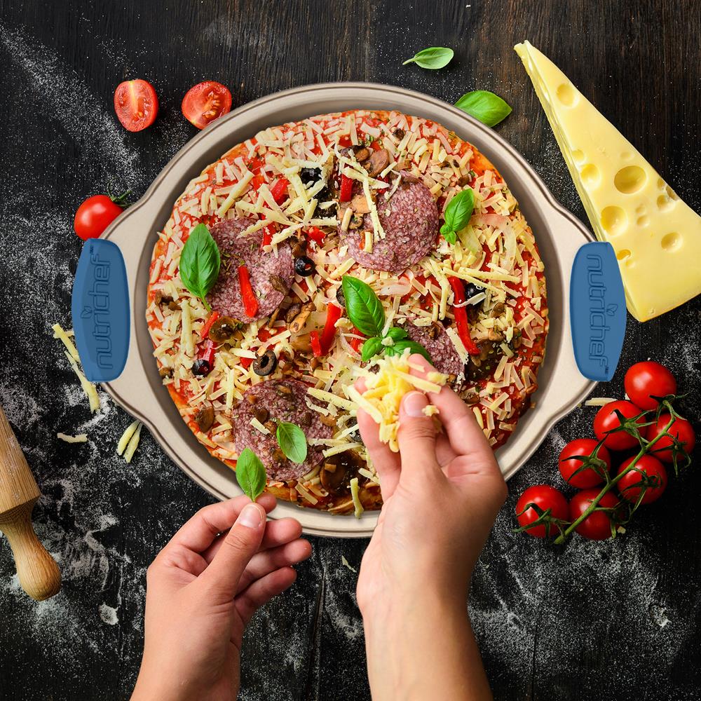 Kitchen Oven Baking Pans - Deluxe Nonstick Gold Coating Inside & Outside Carbon Steel Bakeware Set With Blue Silicone Handles (10-Pieces)