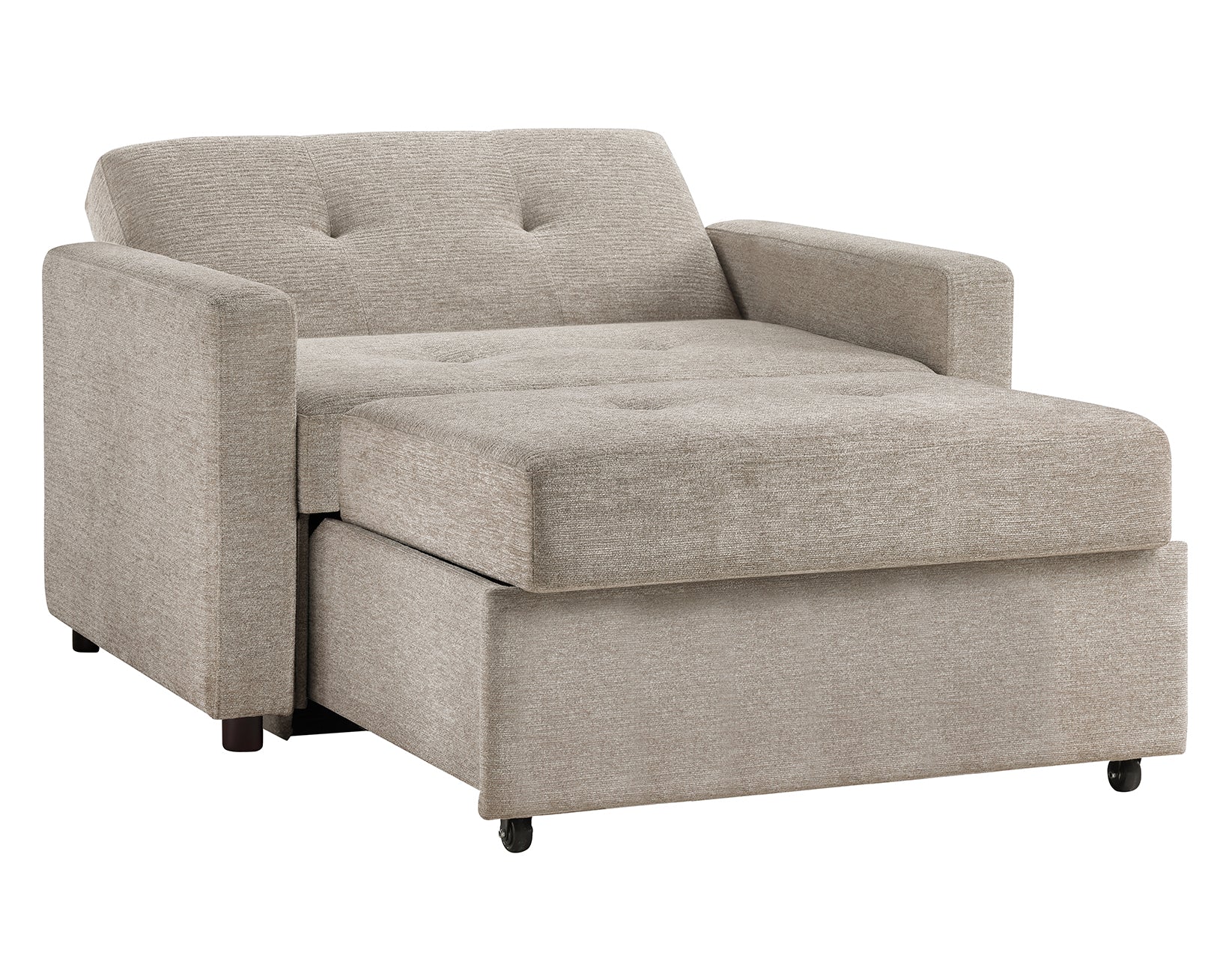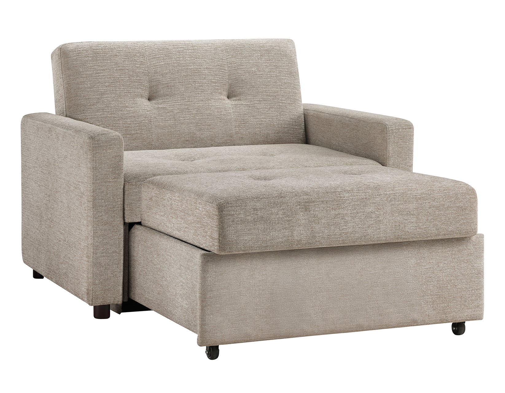 - The Sleeper Chair extends with a simple pull of the base and pops up to form a chaise for comfortable lounging. The 3-position back can be reclined up to a full lay-out to offer a twin sleeping surface for sleepovers or guests.