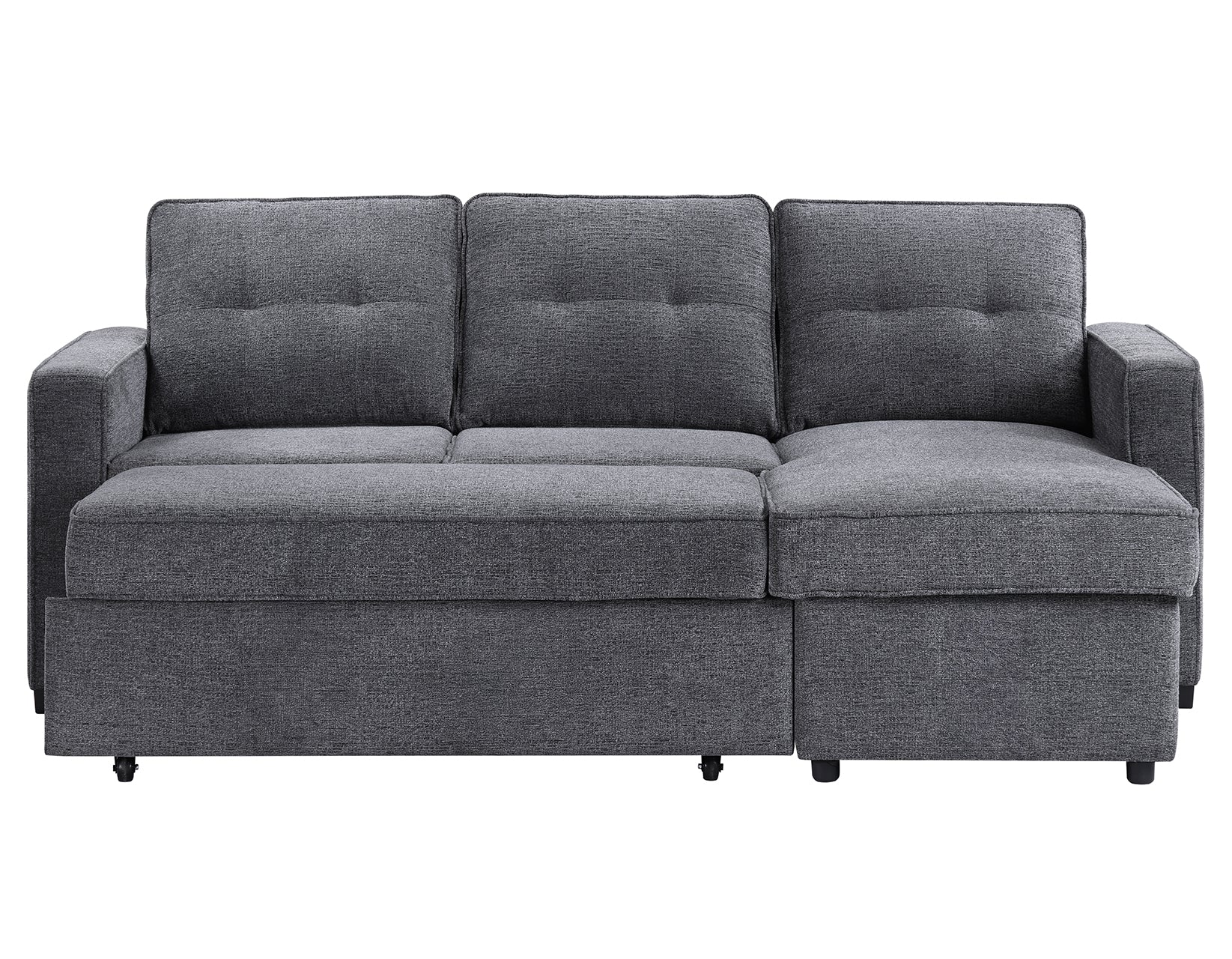 - Crafted of foam, engineered woods, 100% polyester fabric and metal