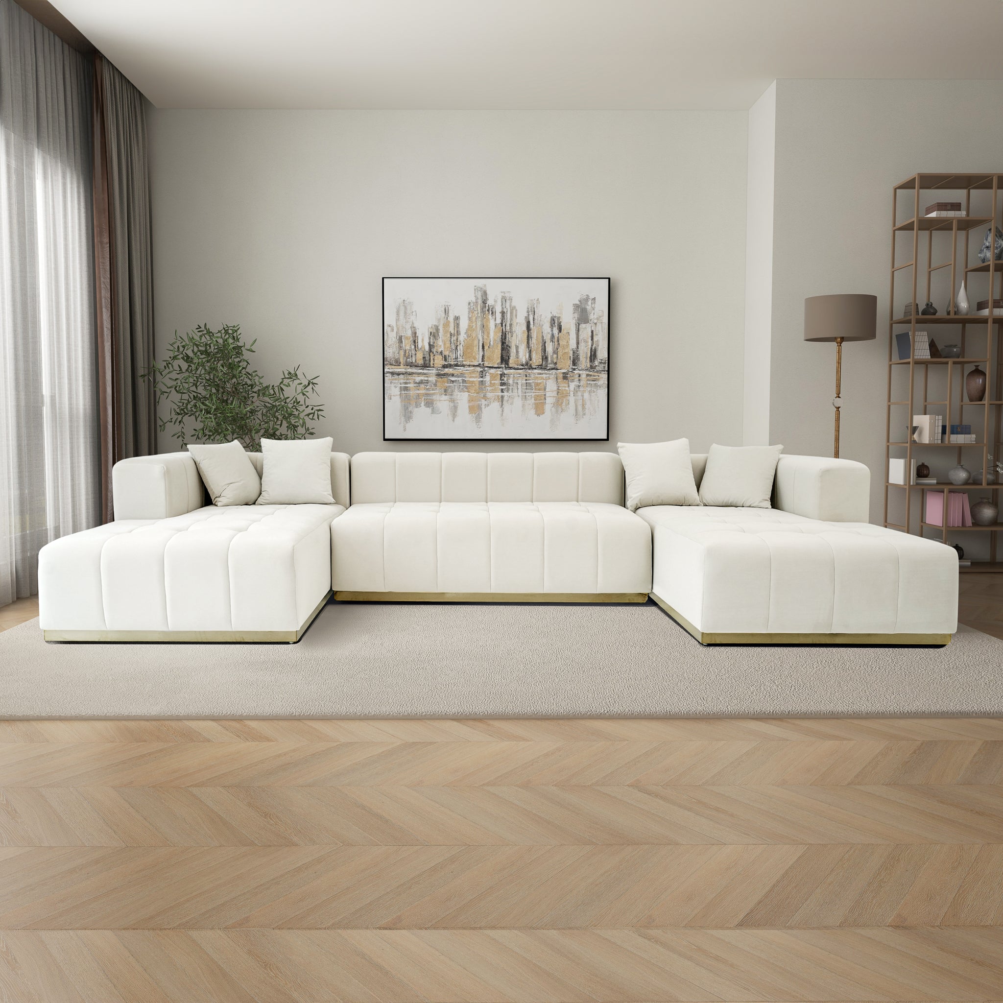 Inspired by mid-century modern design, the Nolan U-Shape Corner Sofa makes a striking statement in any living room while offering exceptional comfort and style. Upholstered in an elegant premium velvet blend, it combines sophistication with durability, thanks to meticulous craftsmanship. The U-shape design provides ample space for lounging or hosting guests, making it a perfect centerpiece for relaxation. Featuring high-density foam cushions, it quickly becomes the favorite spot in your home. Easy to assemble in minutes, the Nolan sofa is built for lasting strength and timeless appeal.