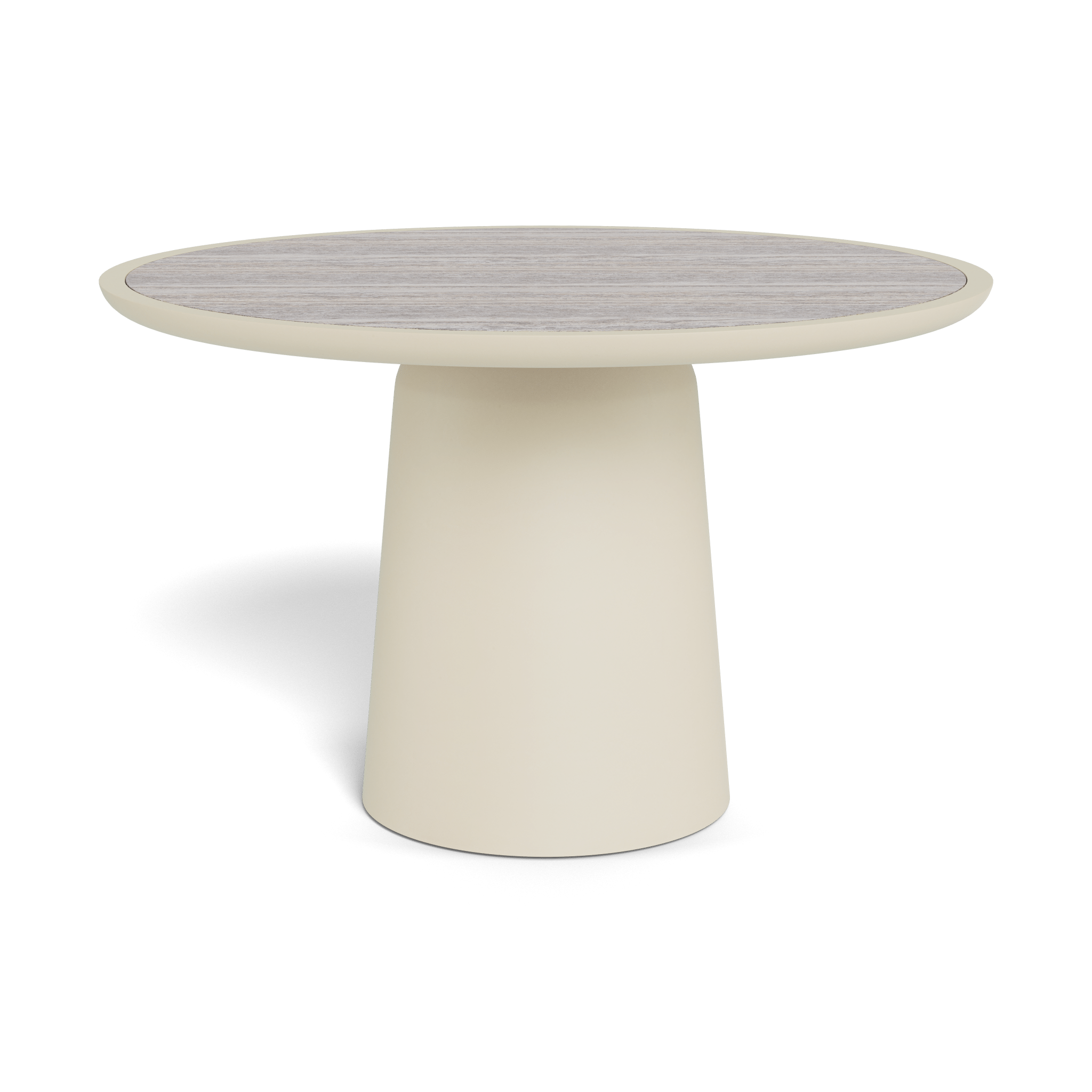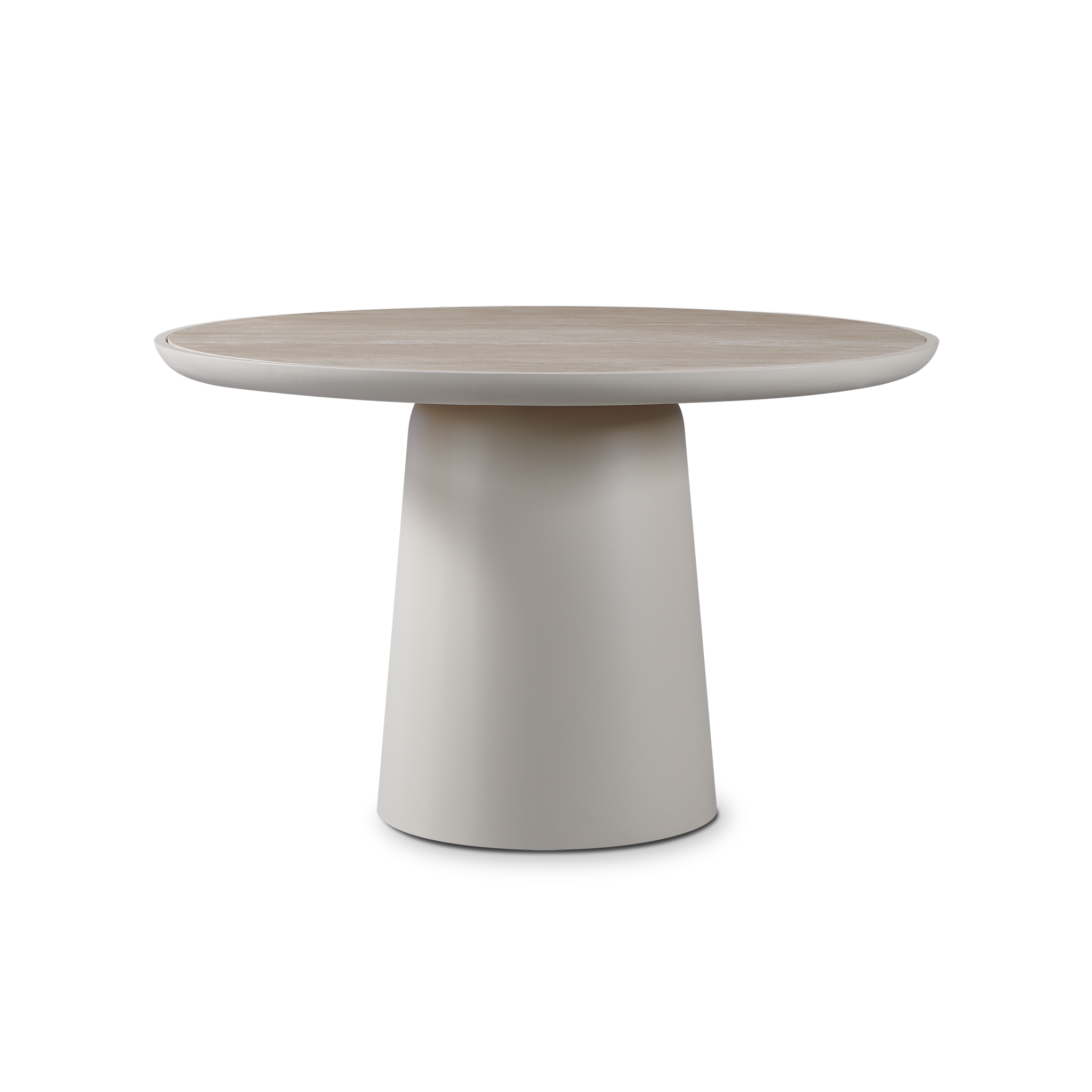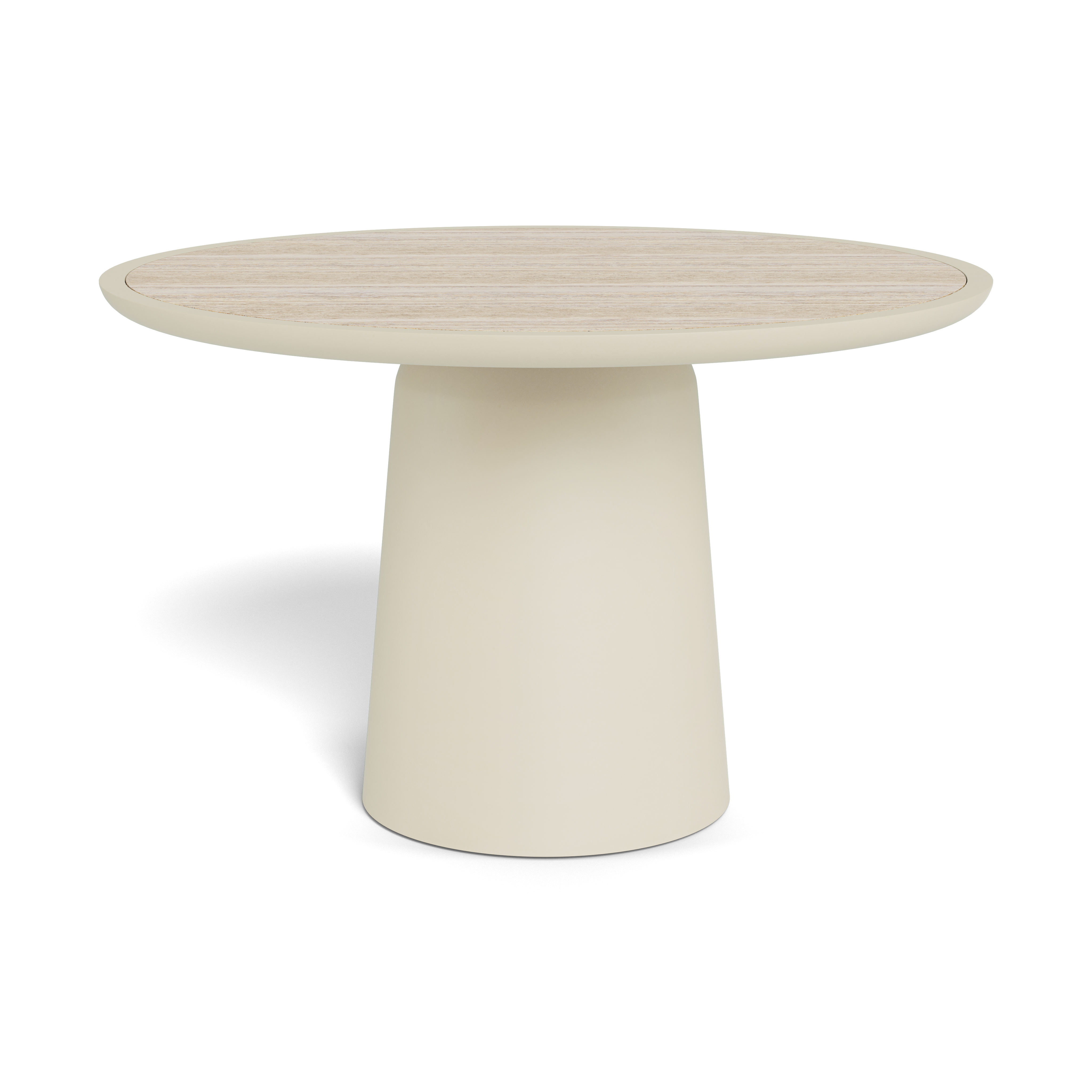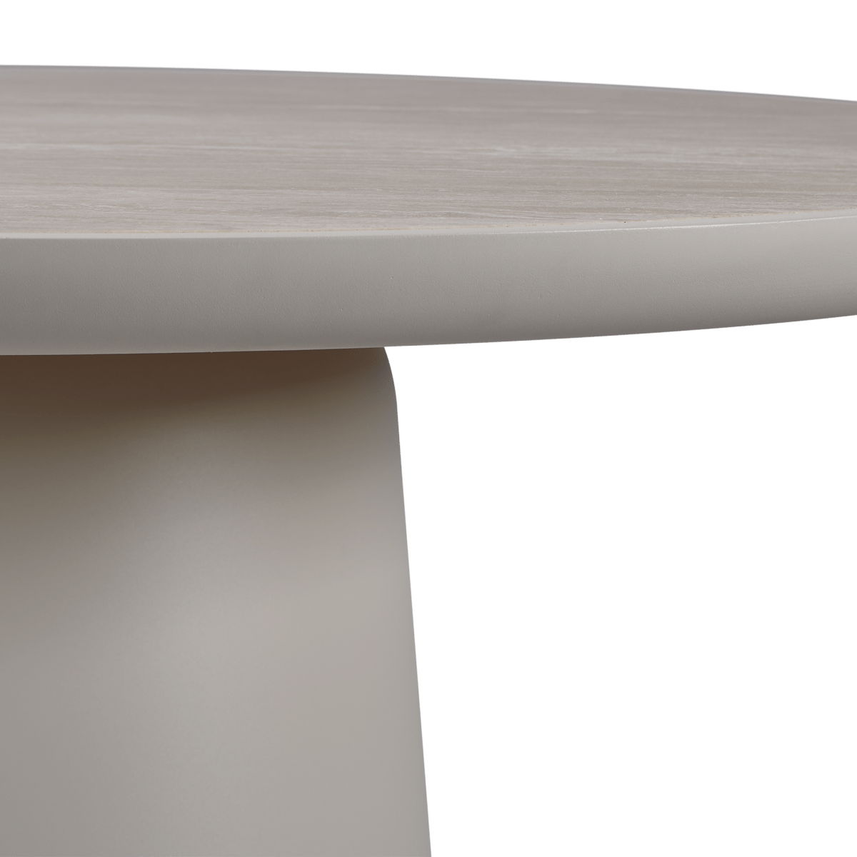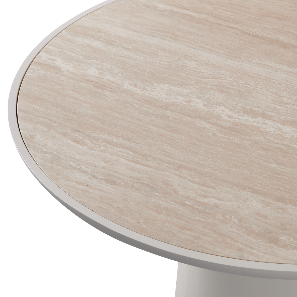 Sculptural simplicity echoes midcentury design in our Nova collection, where sleek and sophisticated lines provide an understated foundation for the contrasting textures of aluminum and travertine. The mixed–material Nova Round Dining Table 60" anchors your outdoor dining experience — featuring a powder coated aluminum base in Aluminum Bone with an inset travertine top in Natural. At a very practial 48" in diameter, this table is versatile enough for small–to–medium spaces and would also work as a cafe–style table for up to four. Elegant in its restraint, this piece adds a refined touch to your space. Pair it with any dining chair to complete your outdoor dining set.