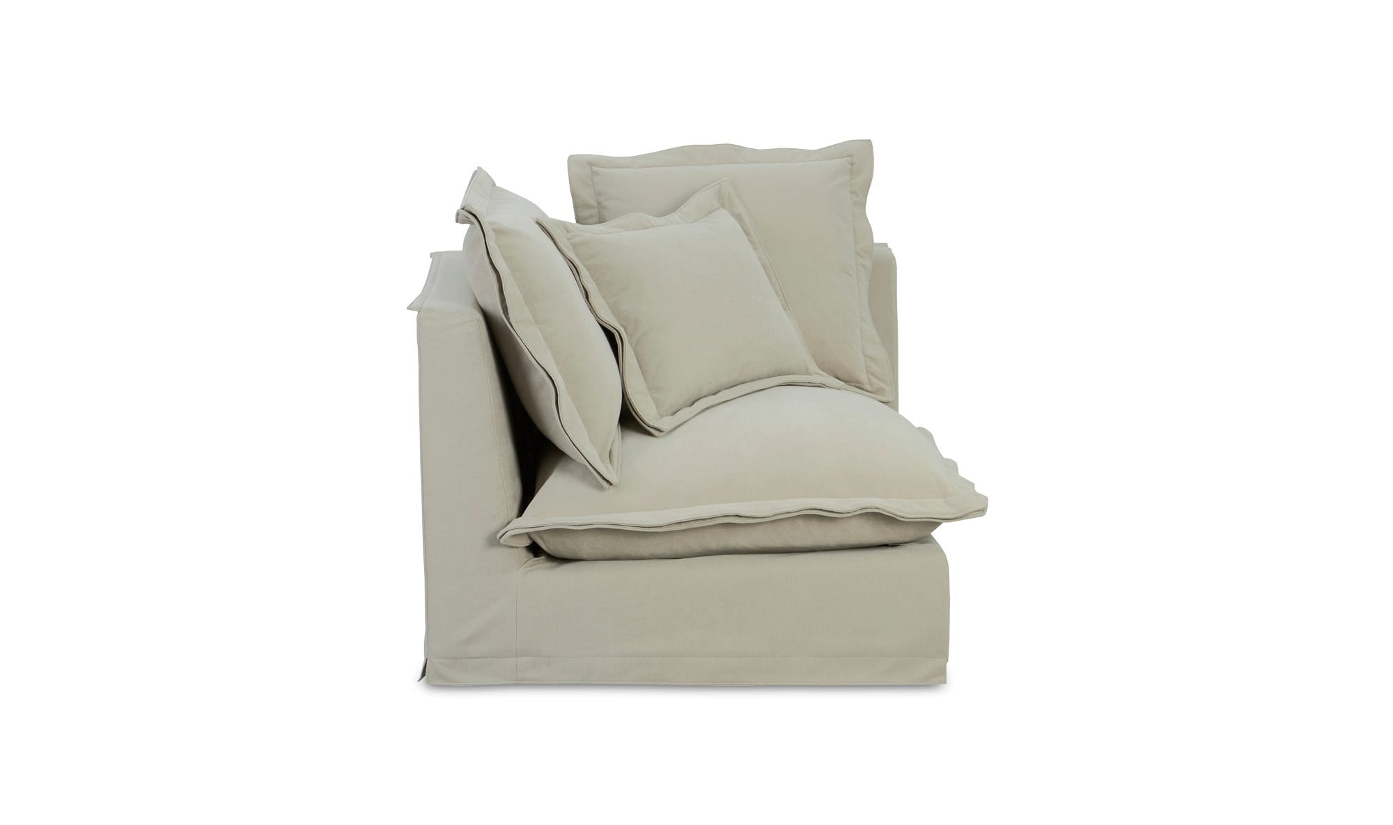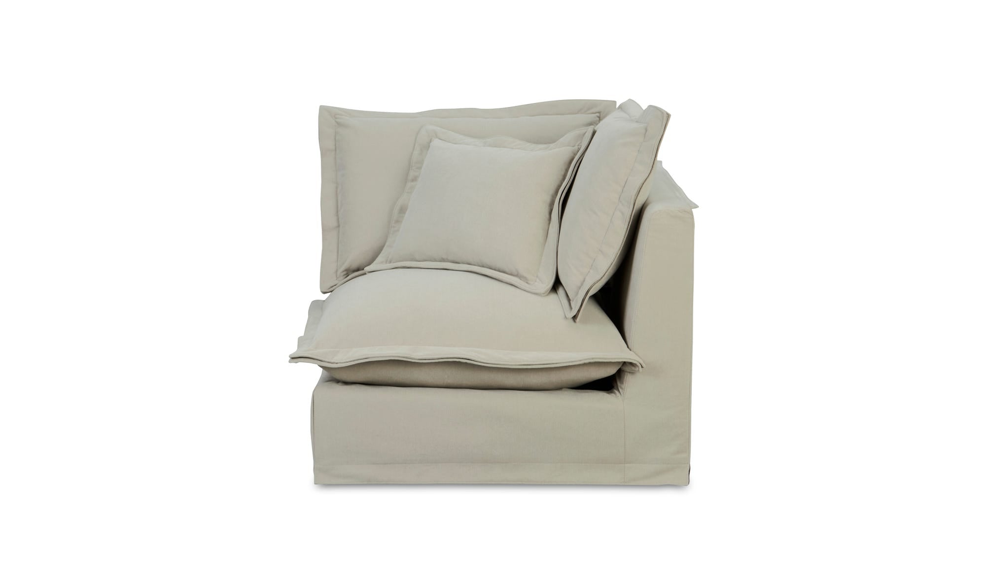 With its gentle sloped arms and elegant slipcover easy-to-clean LiveSmart performance fabric upholstery, the Olivia corner chair nods to traditional design while embracing the demands of everyday living. Crafted for unrivaled comfort, it features plush seats made from a luxurious feather and fiber blend, complemented by flange edge seams for a soft, pillow-like feel.