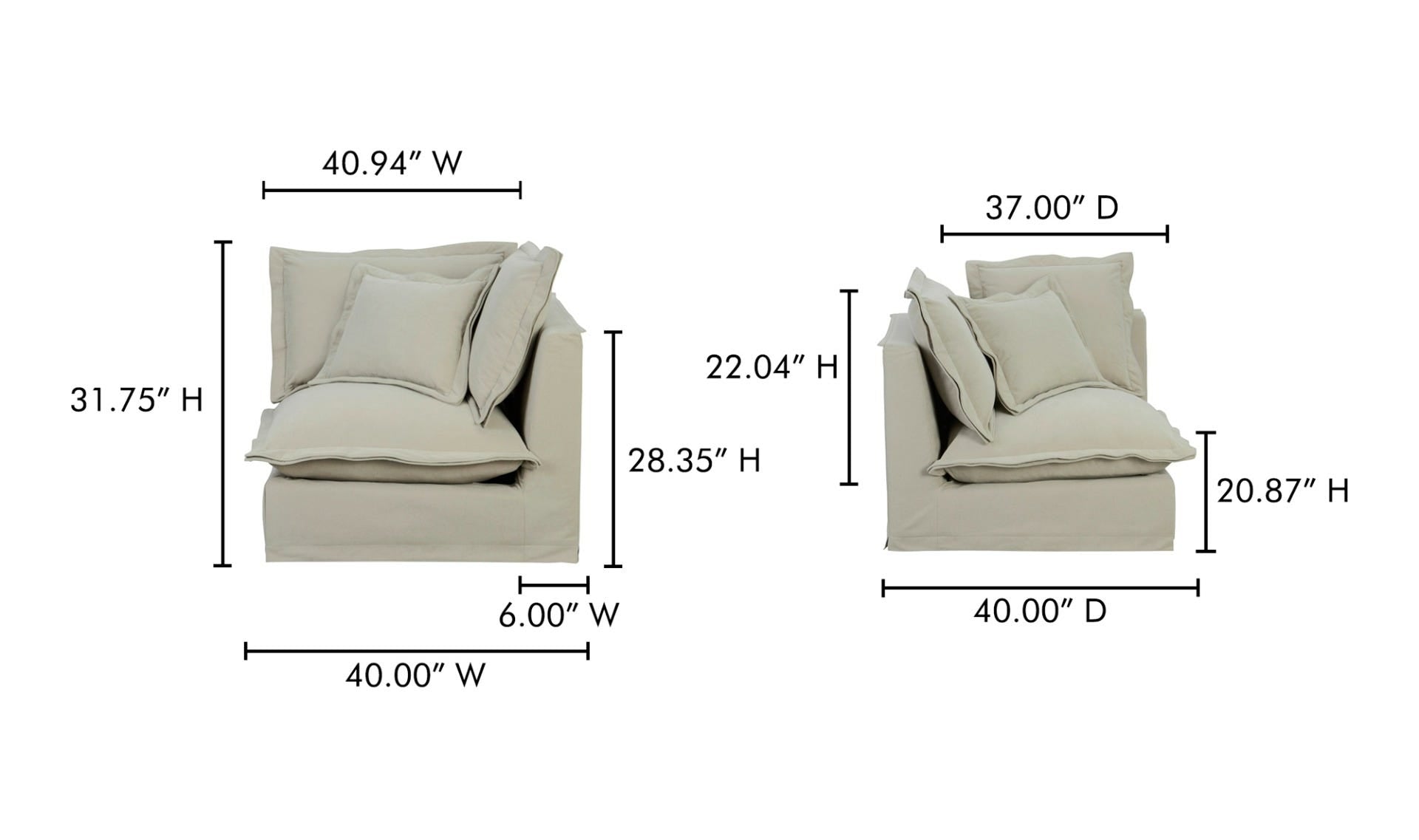 | Product Materials | Upholstery: 98.5% Polyester, 1.5% Nylon Performance Fabric, Solid Wood and Plywood Frame, S-Springs and Webbing Support, Feather, Foam, and Fiber |