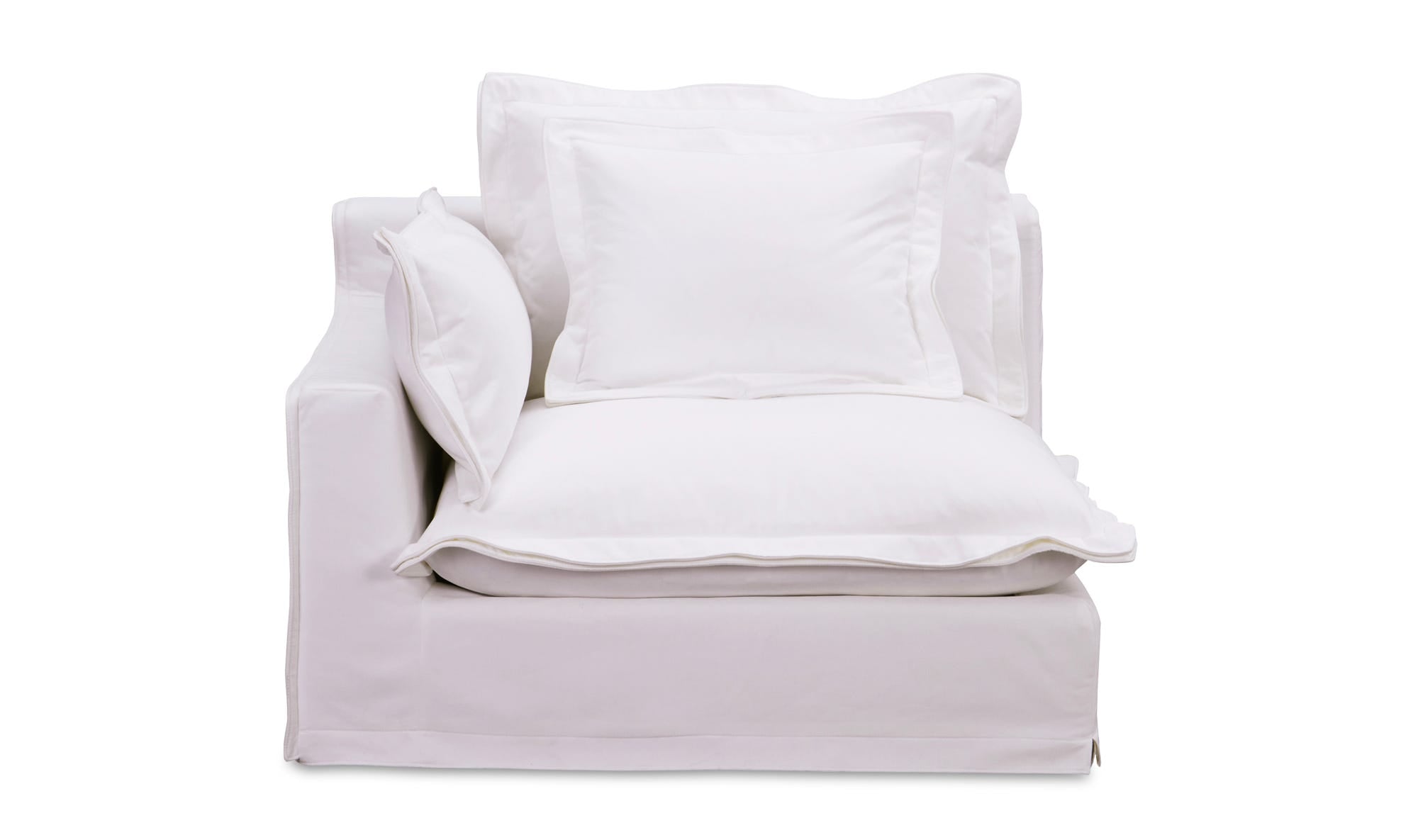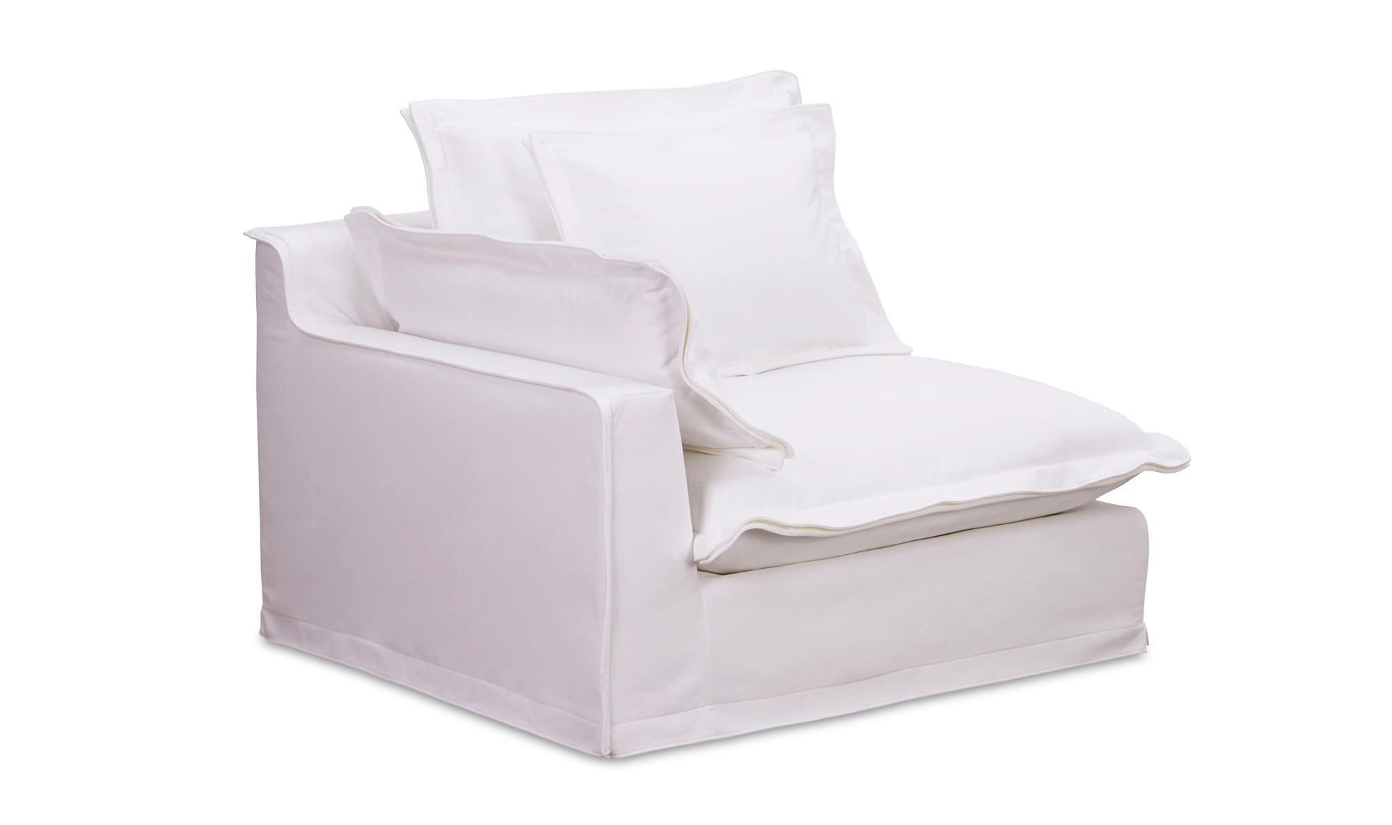 With its gentle sloped arms and elegant slipcover easy-to-clean LiveSmart performance fabric upholstery, the Olivia left arm facing chair nods to traditional design while embracing the demands of everyday living. Crafted for unrivaled comfort, it features plush seats made from a luxurious feather and fiber blend, complemented by flange edge seams for a soft, pillow-like feel.