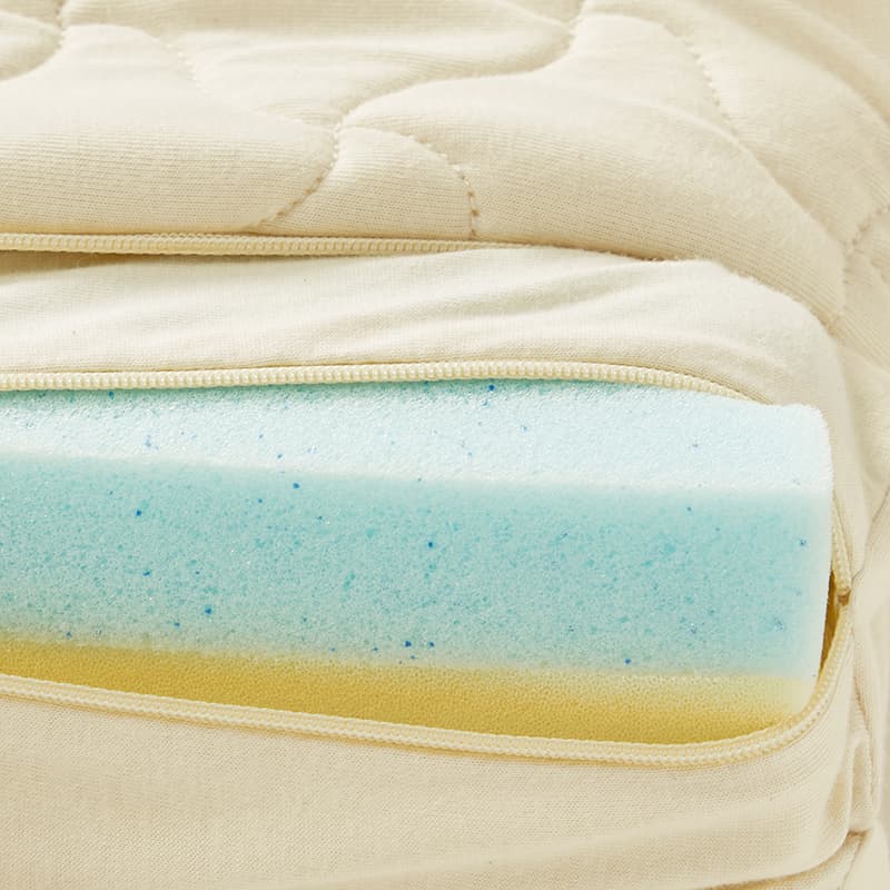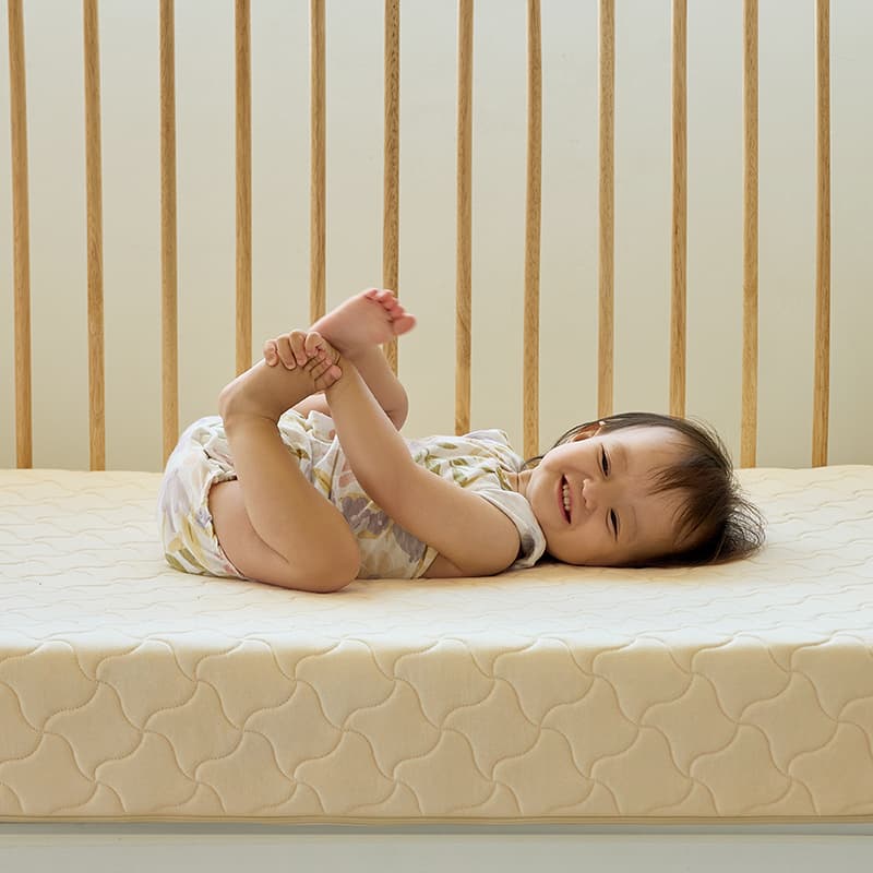 The mattress features organic cotton-jersey knitted fabric for a breathable, moisture-wicking, and skin-friendly surface, suitable for a healthy sleep environment. The 5mm food-contact-safe silicone foam?inside the quilted cover enhances breathability and texture, offering antibacterial and anti-dust mite protection. Designed for direct skin contact, the soft quilted cover remains comfortable even after washing. Both the outer cover and inner lining are removable and washable, making upkeep simple and convenient. With its two-stage design, the mattress grows with your child: the high-density foam side supports babies, while the get memory foam side is for toddlers. The waterproof inner cover protects the core from spills, keeping the mattress dry and clean. Plus, the mattress can be used as a play mat when unfolded, adding versatility. The quilted design on the top and sides increases airflow and gives it a modern, stylish look.