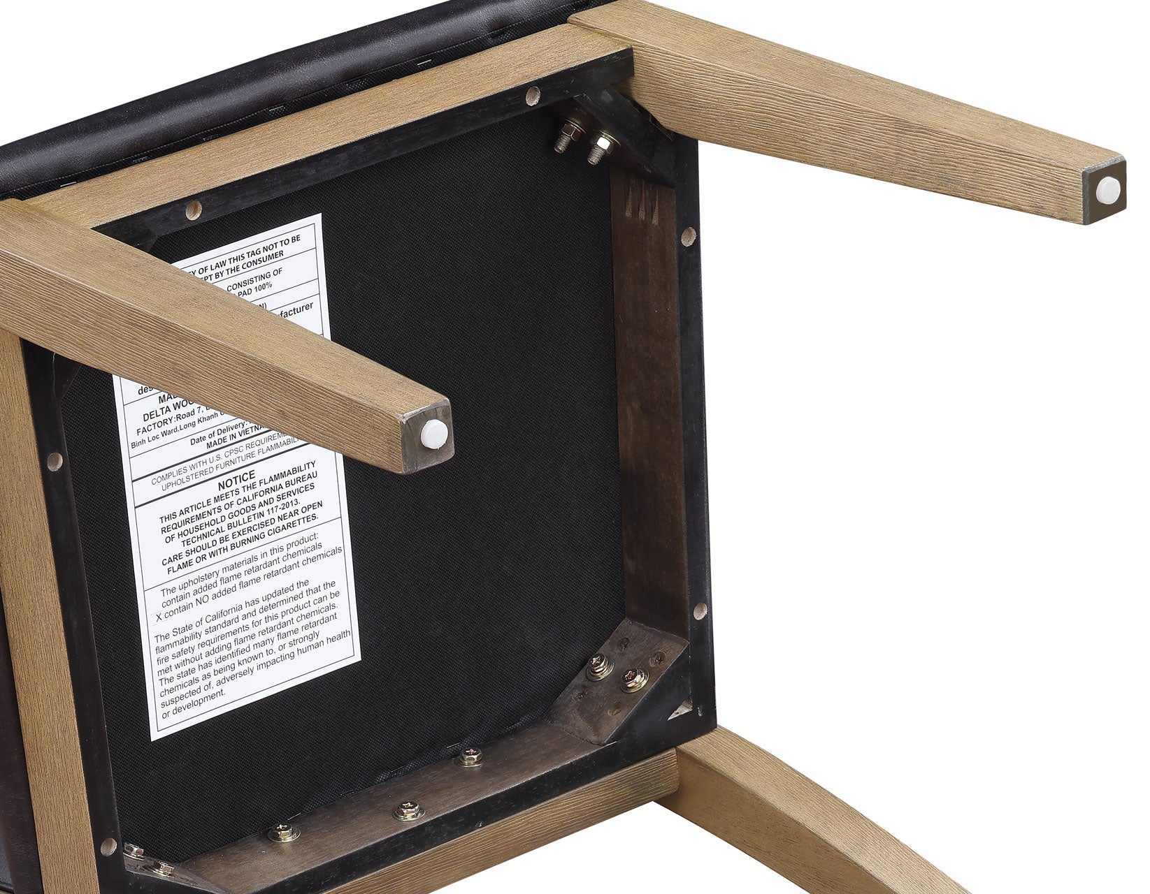 - Crafted from solid Asian hardwoods, foam, engineered woods and vegan leather cover