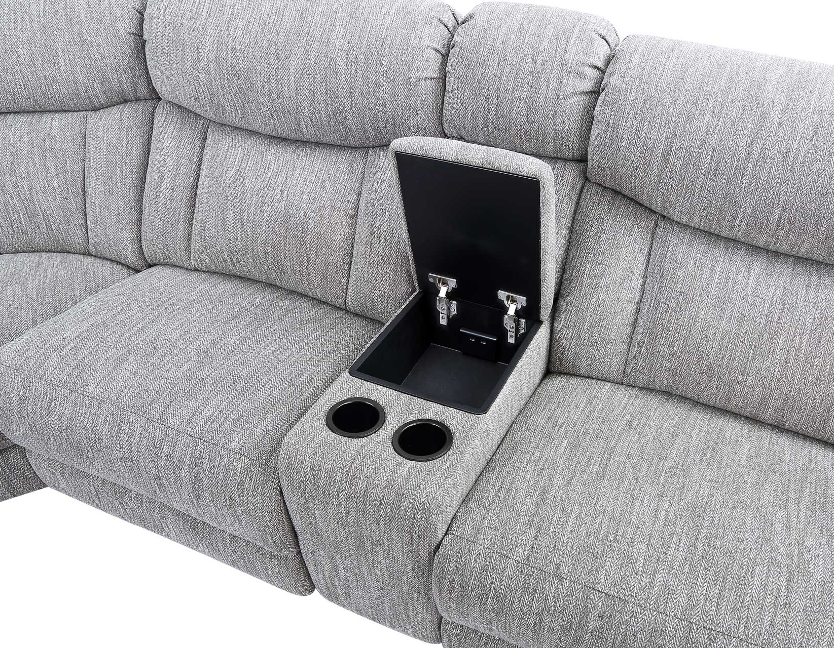 - Lift-Top Console offers convenient storage for remotes and electronics with 2 conceaed USB charging ports and 2 cupholders