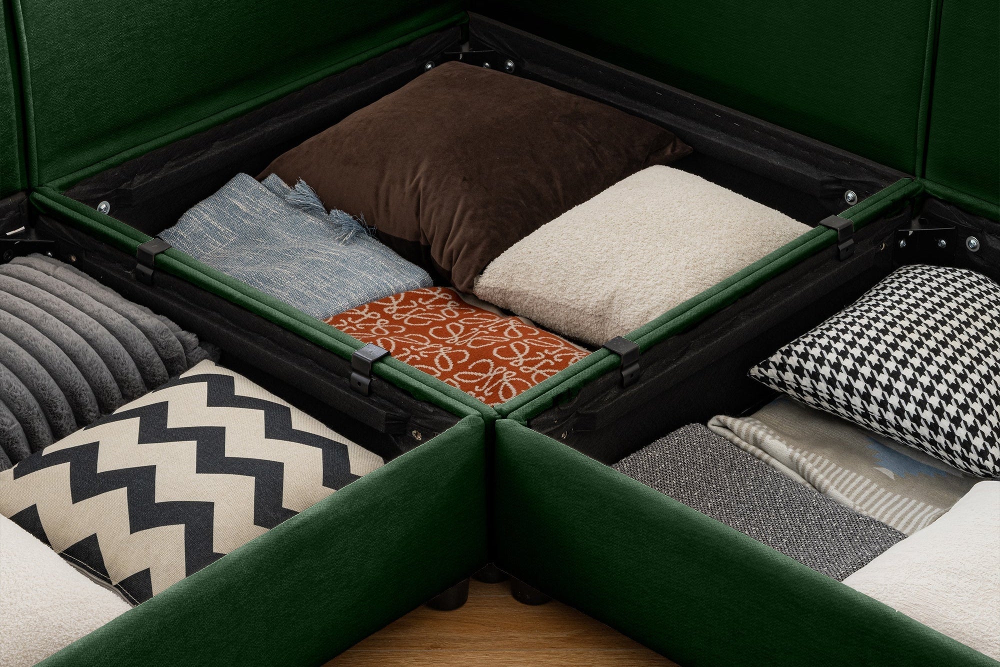 Box 1 (Qty: 1): 33.46" L x 33.46" D x 5.71" H Box 2 (Qty: 3): 33.46" L x 33.46" D x 9.25" H Box 3 (Qty: 3): 33.46" L x 33.46" D x 12.6" H |