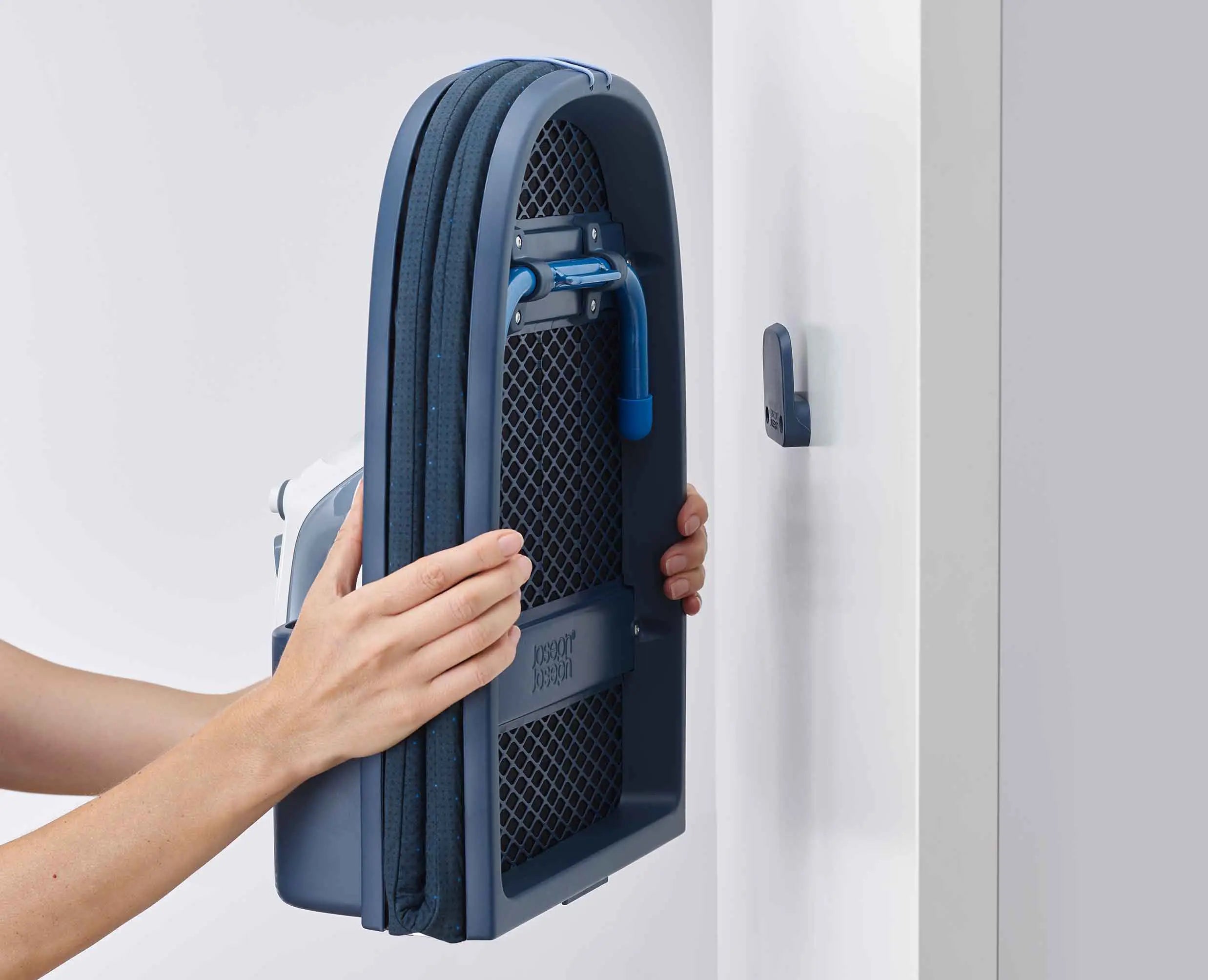 Ironing boards are often fiddly to set up and difficult to store away. Pocket Plus, however, breaks the mould. We designed our revolutionary table-top and folding ironing board in blue with exceptional storage capabilities and uncompromising functionality. When not in use, Pocket Plus folds in half for easy storing and even has an integrated storage compartment for the iron. It also has the added benefit of an advanced DripLock™ cover to prevent excess water from dripping.