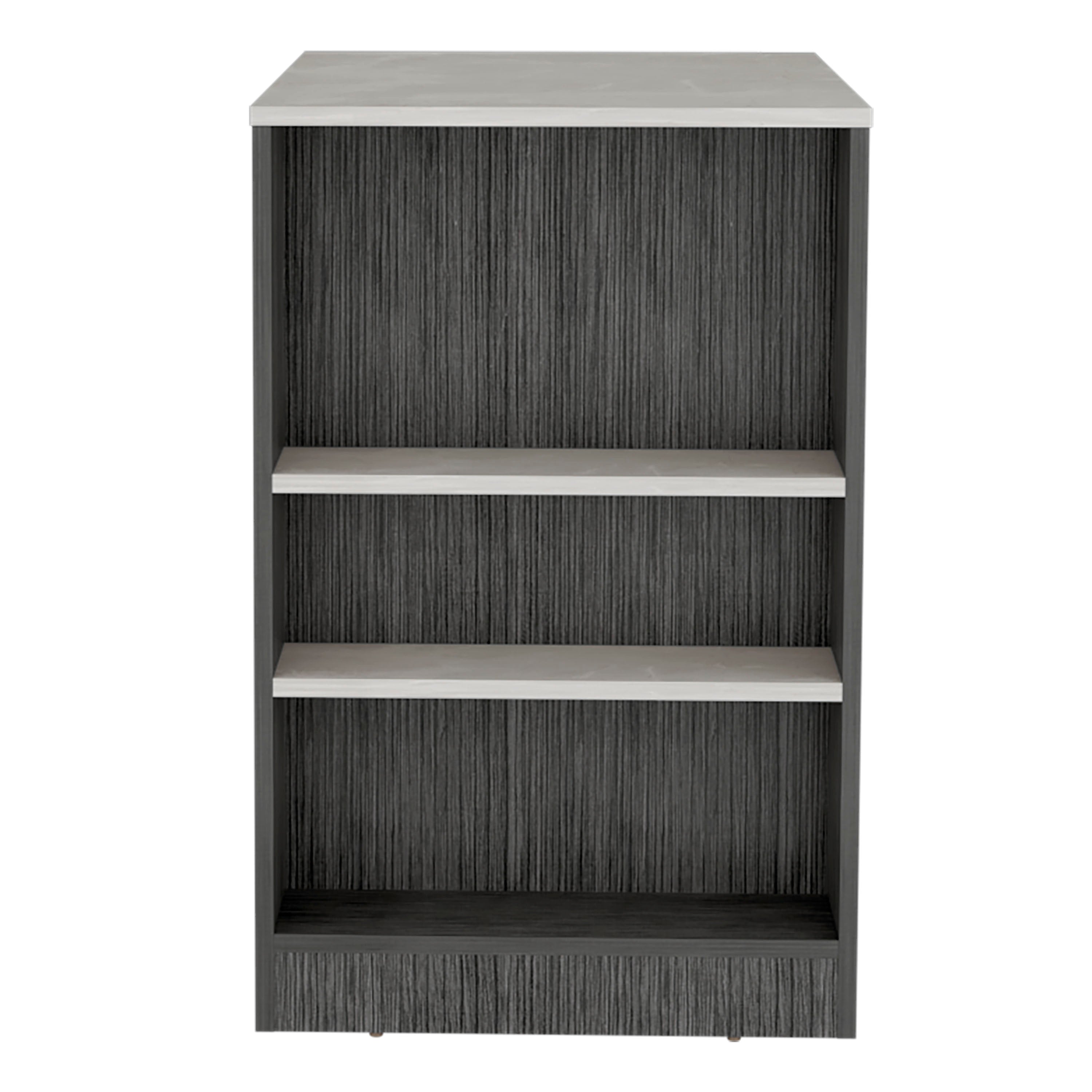The Portree Kitchen Island is a versatile and functional piece of furniture that will elevate any kitchen. Available in white/macadamia, black/Ibiza marble, concrete gray / ibiza marble and smmokey oak / ibiza marble finishes, this kitchen island is made from high-quality manufactured wood that is durable and easy to clean.