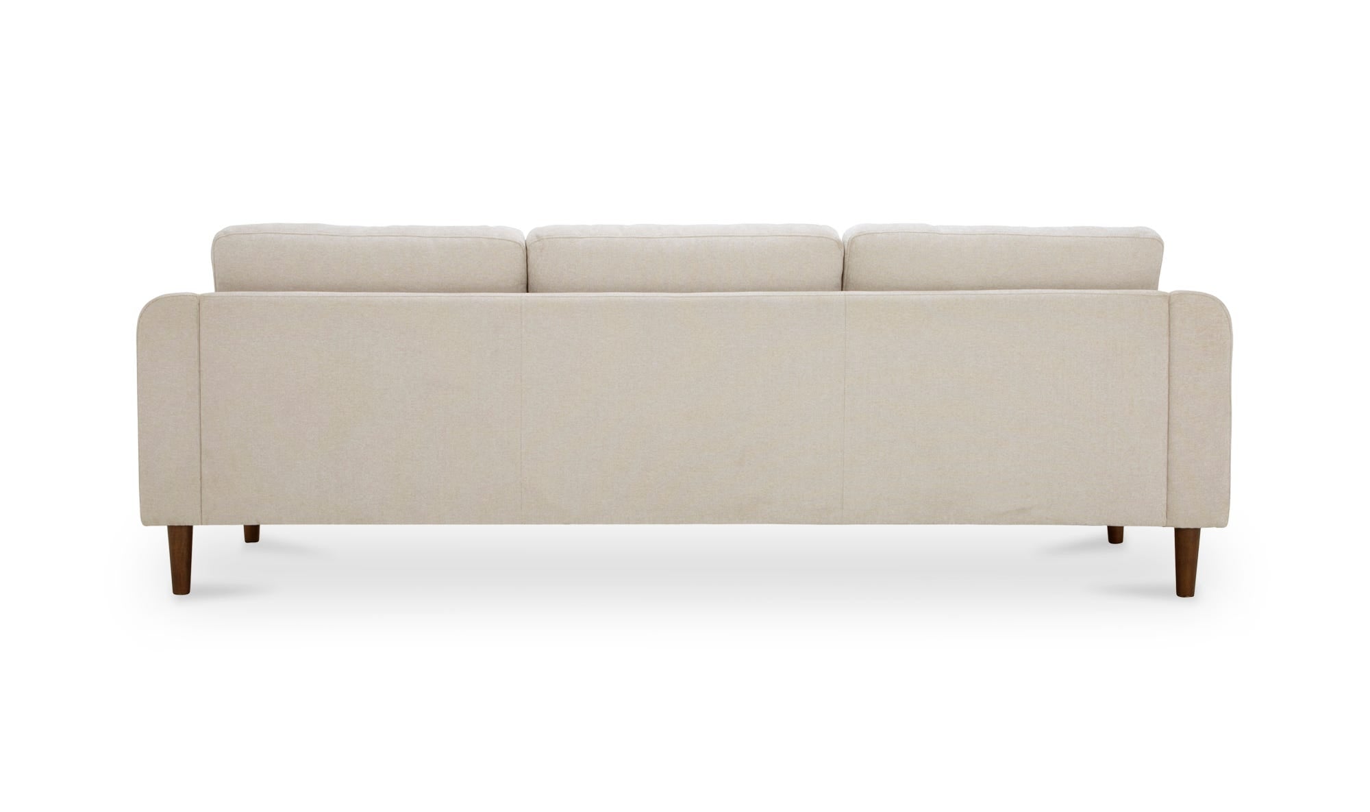 Featuring a reversible chaise ottoman, the Quinn 98in sectional adapts effortlessly to any living space by offering a left or right-side facing orientation. With solid rubberwood legs, it stands on a foundation of durability and sustainable charm. The classic, transitional frame is designed for versatility, harmoniously fitting into a variety of spaces. Wrapped in soft-touch fabrics, it offers an elevated feel, inviting touch, and undeniable comfort with its timeless design and tactile elegance.