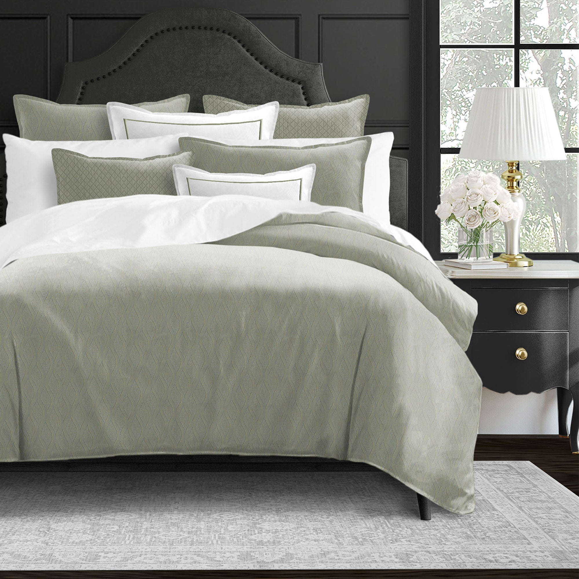 Rania is a beautiful, woven, tone-on-tone, chain-link design. The quiet elegance presented in the fabrics subtle olive iridescent finish, whispers of soft blue threads, and simple texture lend to refinement. Made with an easy-care fabric, Rania is perfect for those looking for a timeless design with practical maintenance.
