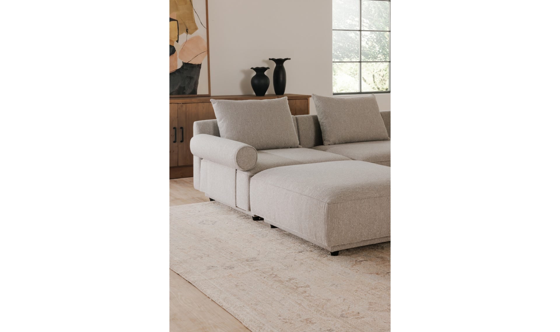 With its clean lines and bolster cushion arms, the Rosello slipper chair offers a versatile seating option with its transitional feel. Finished in a highly textured fabric, this piece adds depth and visual interest while ensuring optimal comfort and relaxation.