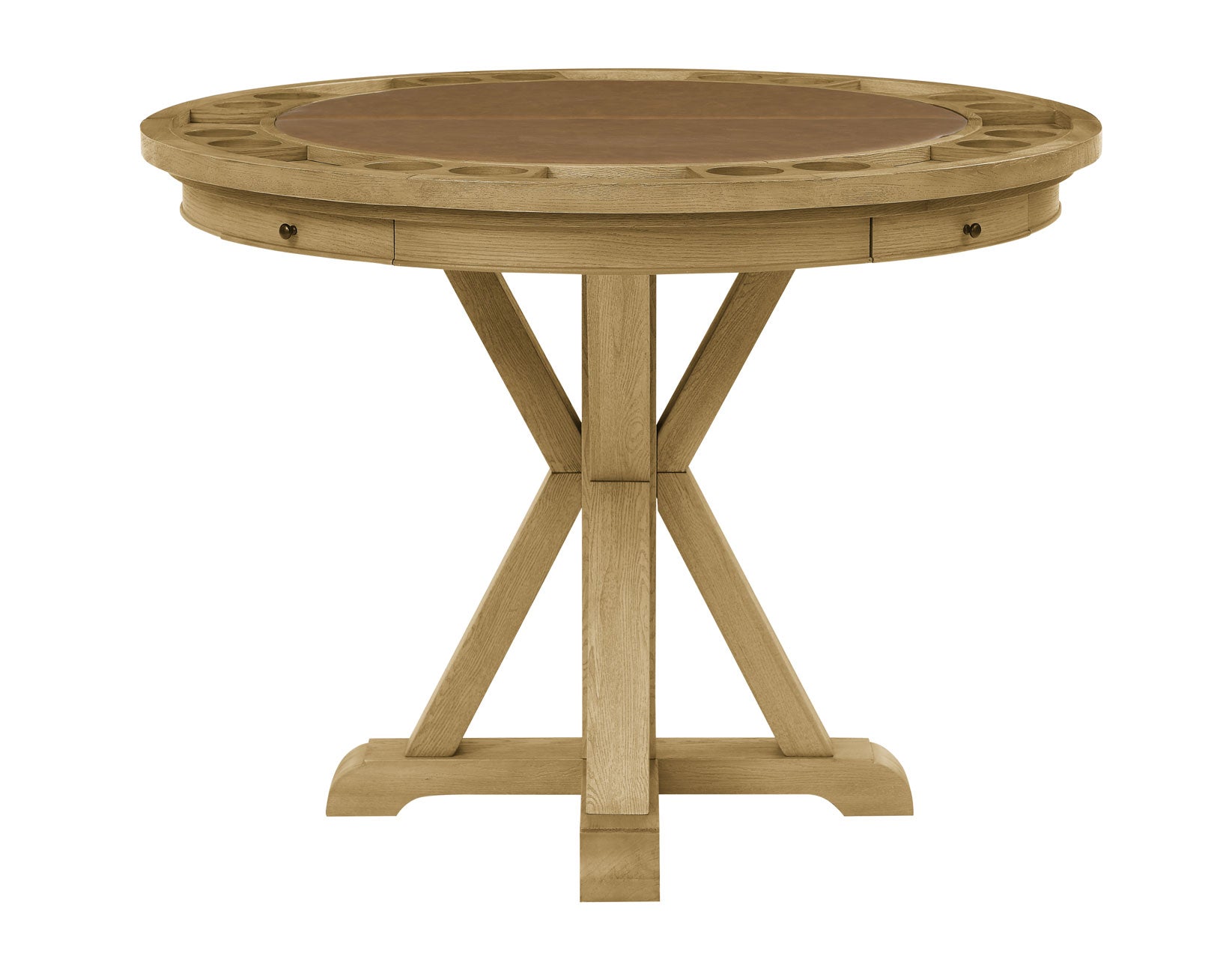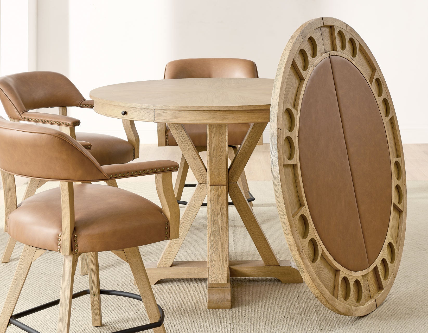 - Set includes the Rylie Folding Game Top, the Rylie 48-inch Counter Dining Table and 4 Rylie Counter Captains Chairs. All in natural finish with camel vegan leather. Each item also sold separately..