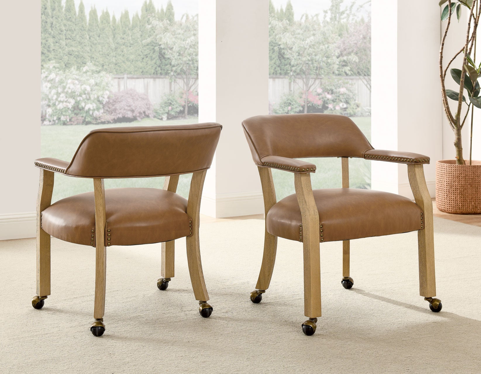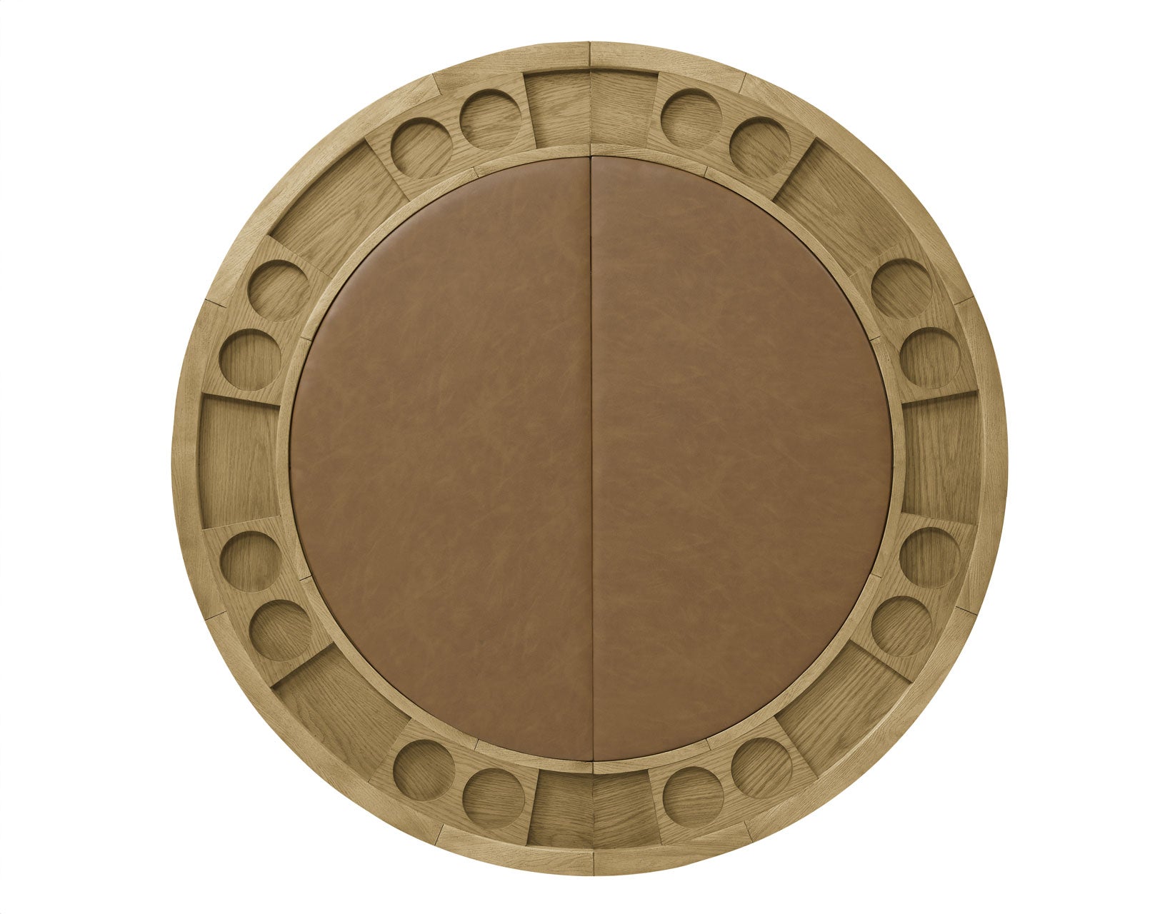 - Set includes the Rylie Folding Game Table Top, the Rylie 48-inch round Dining Table and 4 Rylie castered Captains Chairs in natural finish with camel vegan leather. Each item also sold separately.