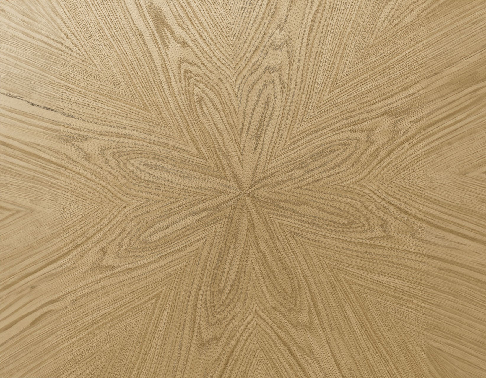 - Beautiful inlaid pinwheel oak veneer pattern creates a stunning work or dining surface