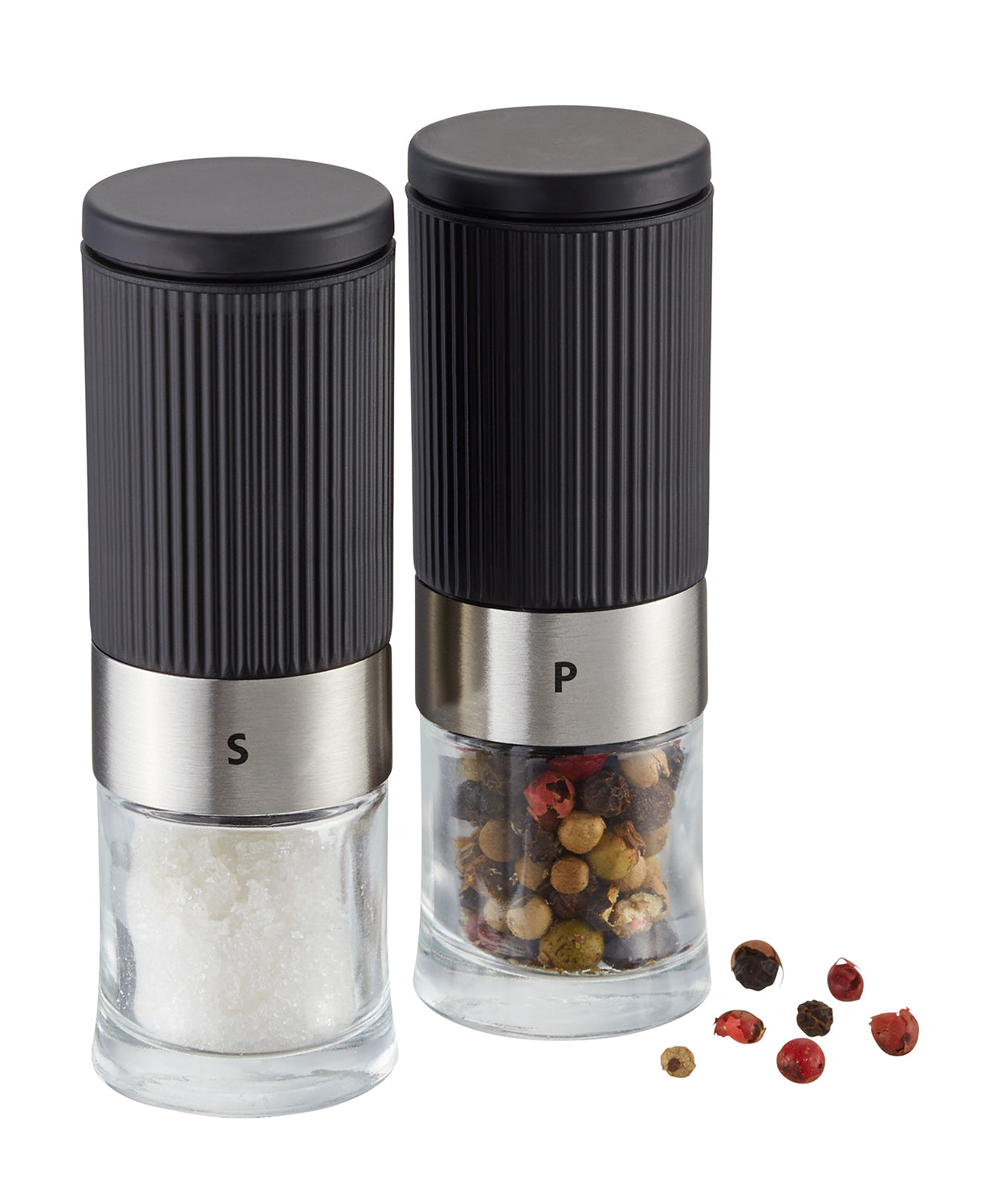 Small, compact and ideal for adding seasoning! The two mini mills with aroma lids standing in the minimalist cruet present an elegant twosome for condiments and can be used in all settings- at the dining table or when camping or having a picnic. The fitted ceramic grinder allows seamless adjustment from coarse to fine.