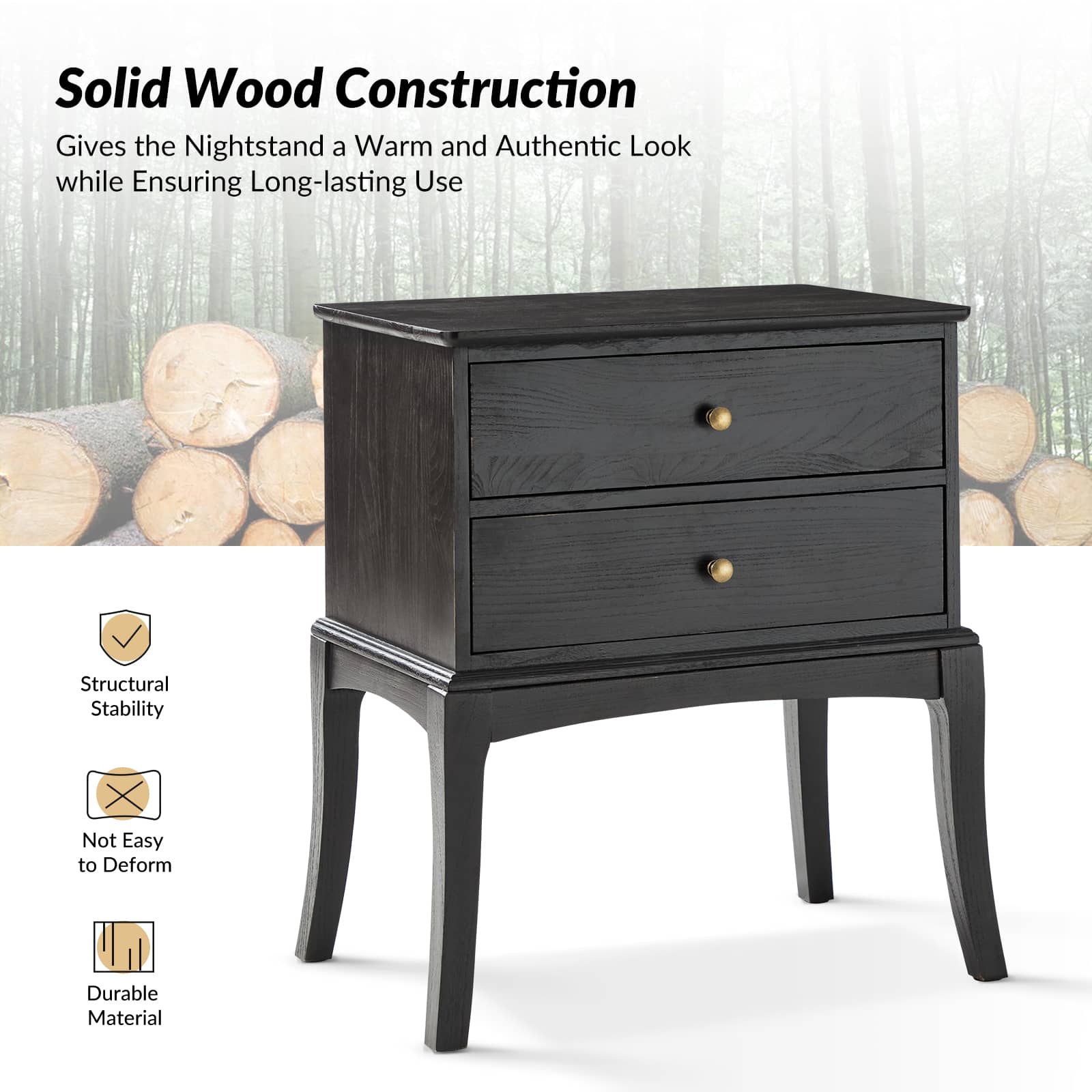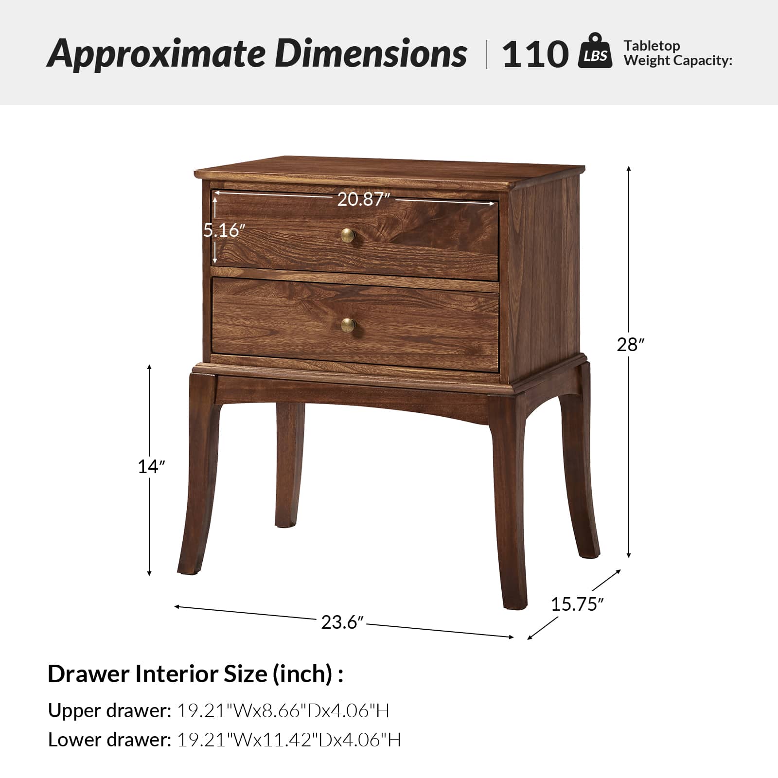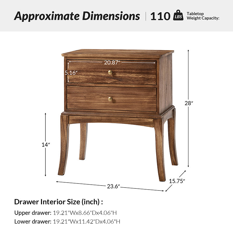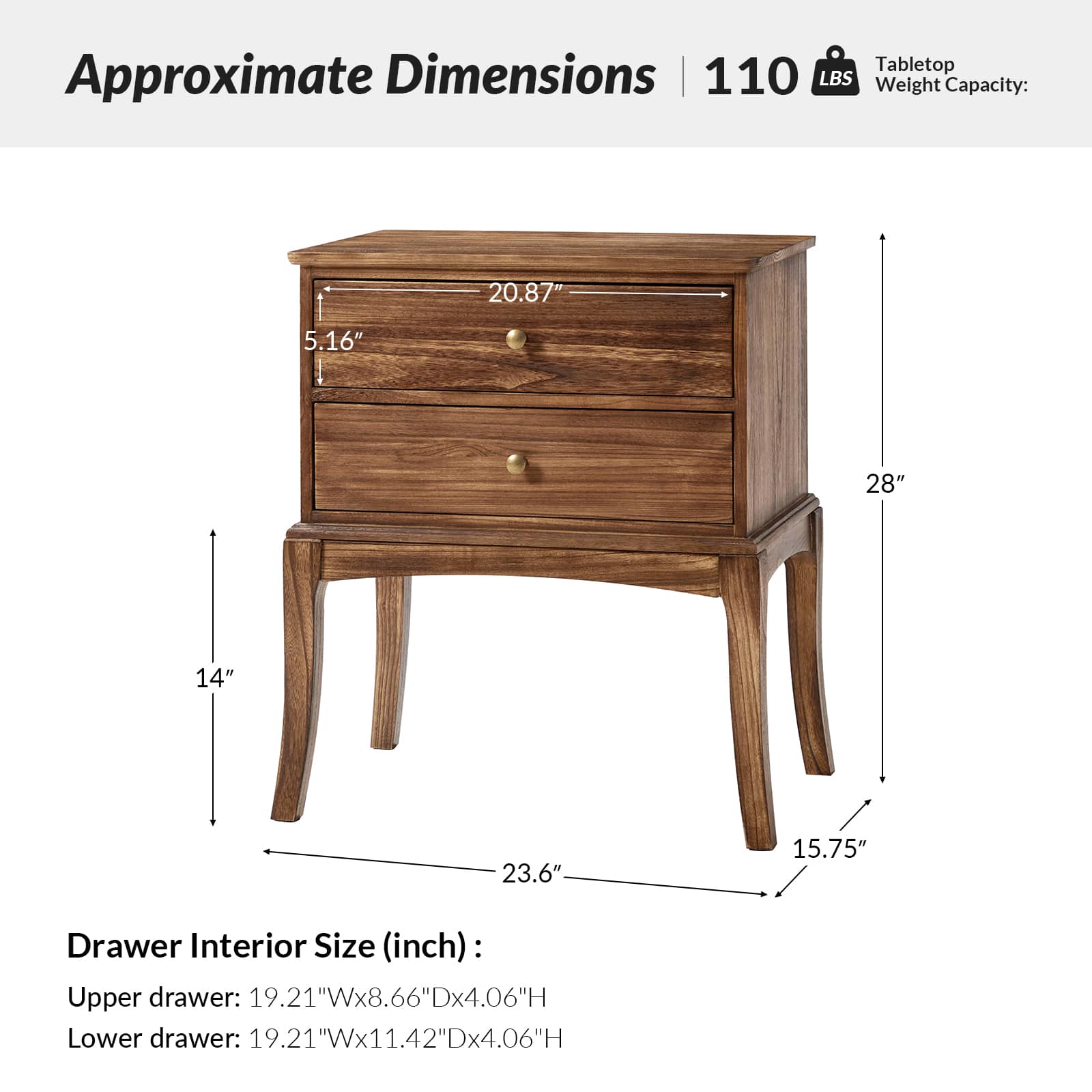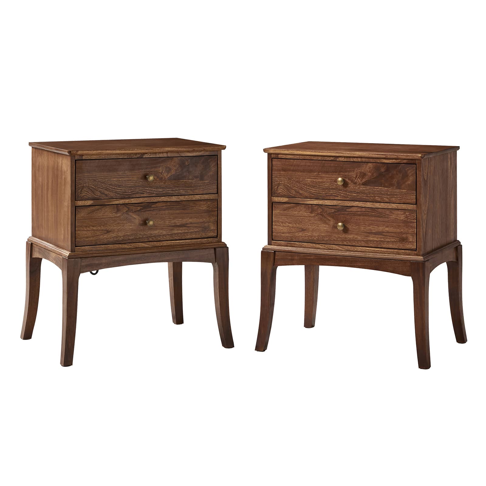 This transitional nightstand is crafted from solid Paulownia wood, offering durability and a timeless aesthetic. Its elegant design features a subtle saber leg base, adding a touch of sophistication and stability to the piece. The nightstand is equipped with two spacious drawers for convenient storage, ensuring that essentials are always within reach. A hidden outlet located behind the top drawer provides a discreet and practical solution for charging devices without cluttering the surface. The natural wood grain and sleek lines create a versatile look that complements both modern and traditional interiors, making this nightstand a suitable addition to your living room or bedroom space.