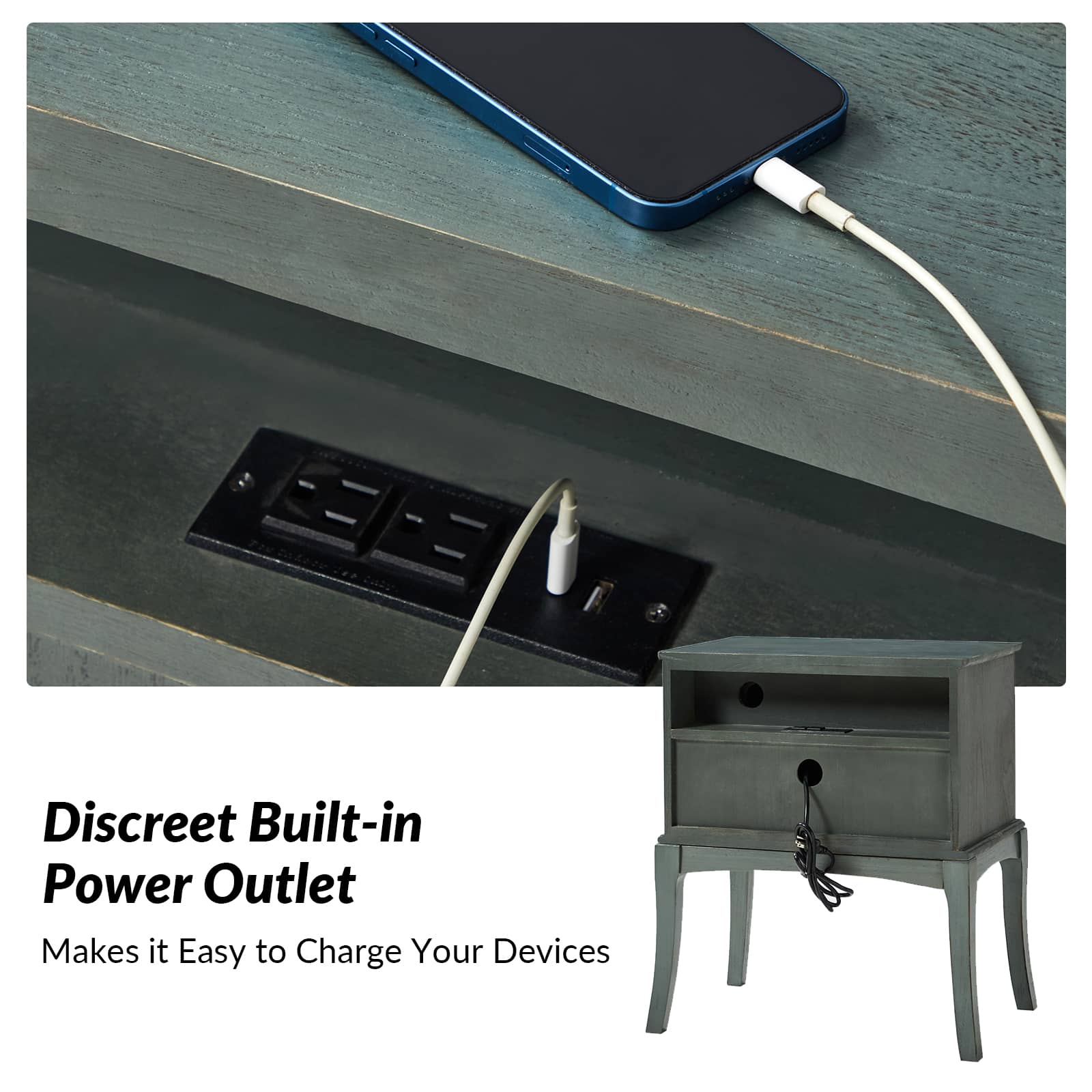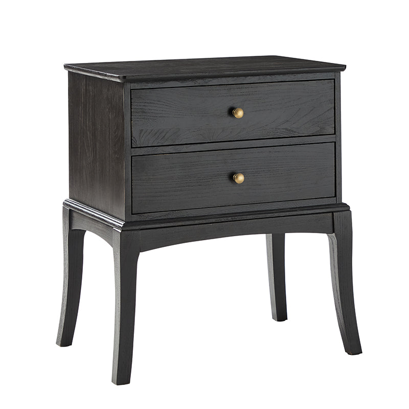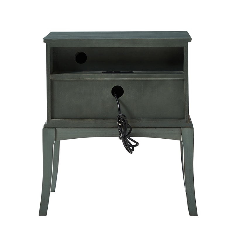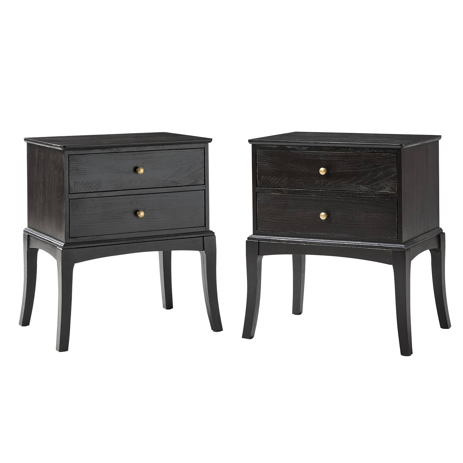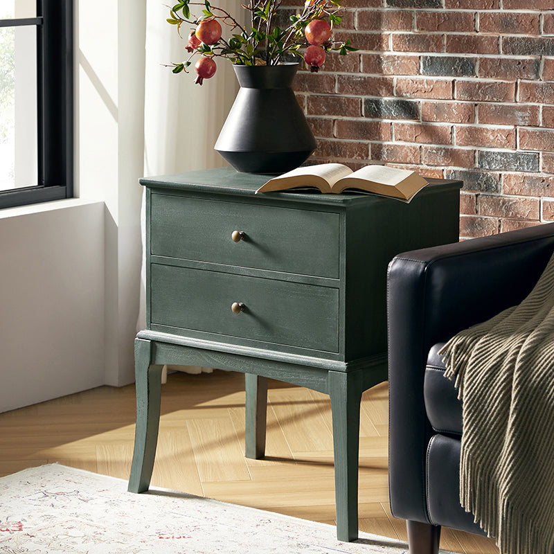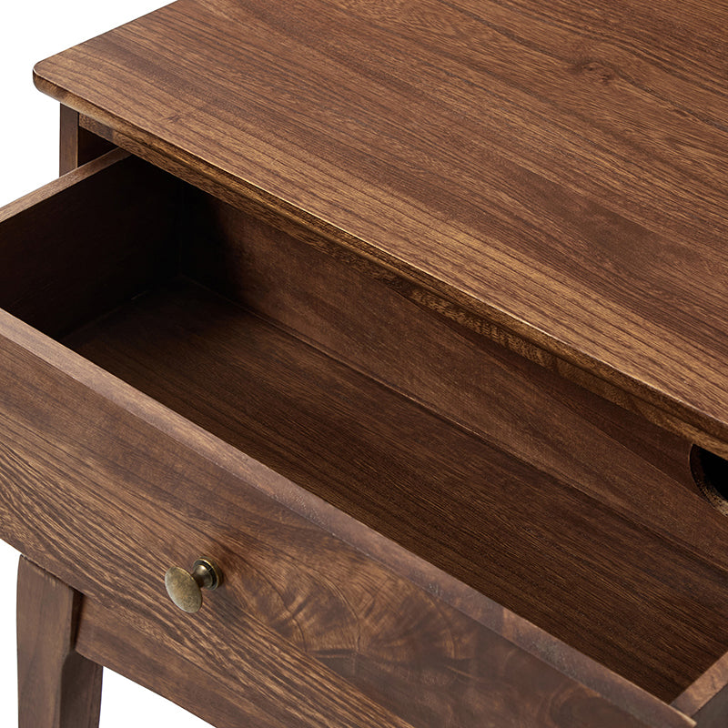 This transitional nightstand is crafted from solid Paulownia wood, offering durability and a timeless aesthetic. Its elegant design features a subtle saber leg base, adding a touch of sophistication and stability to the piece. The nightstand is equipped with two spacious drawers for convenient storage, ensuring that essentials are always within reach. A hidden outlet located behind the top drawer provides a discreet and practical solution for charging devices without cluttering the surface. The natural wood grain and sleek lines create a versatile look that complements both modern and traditional interiors, making this nightstand a suitable addition to your living room or bedroom space.