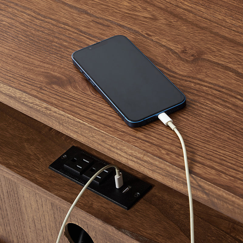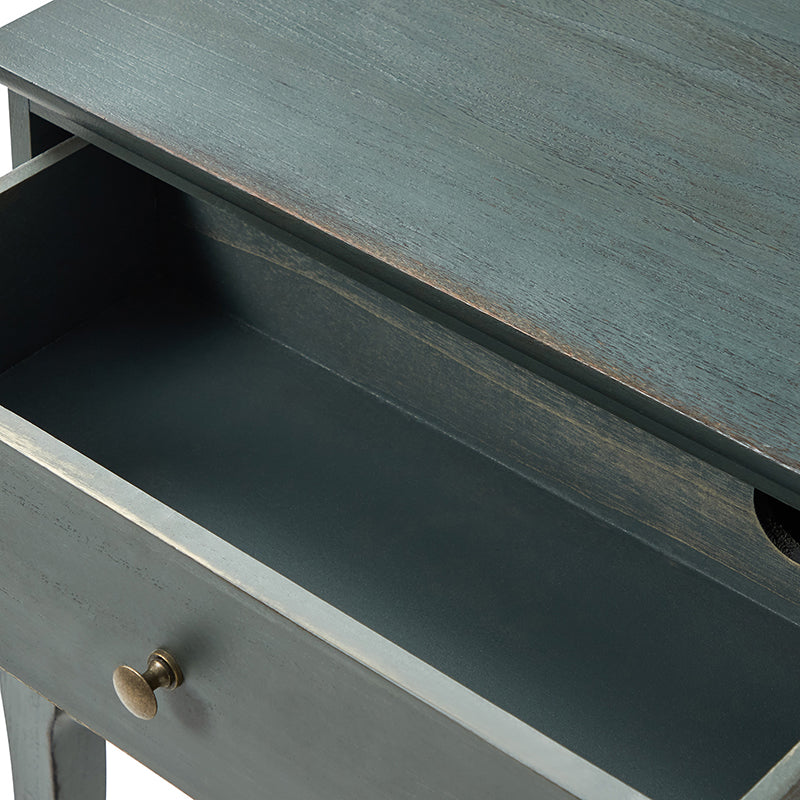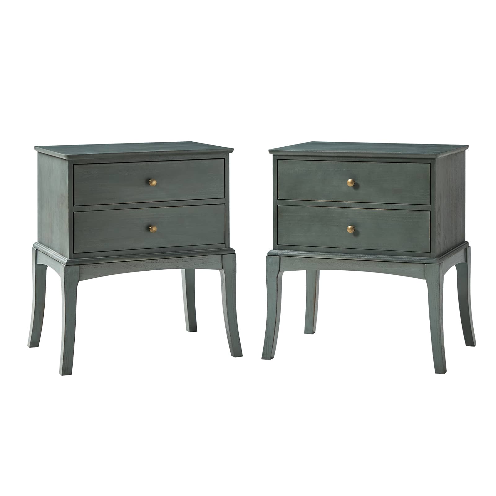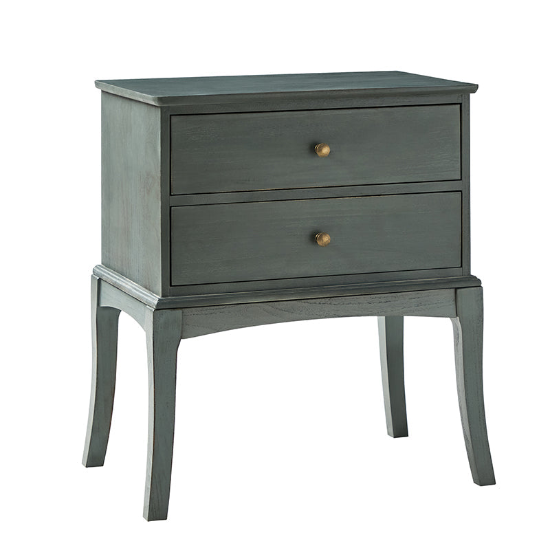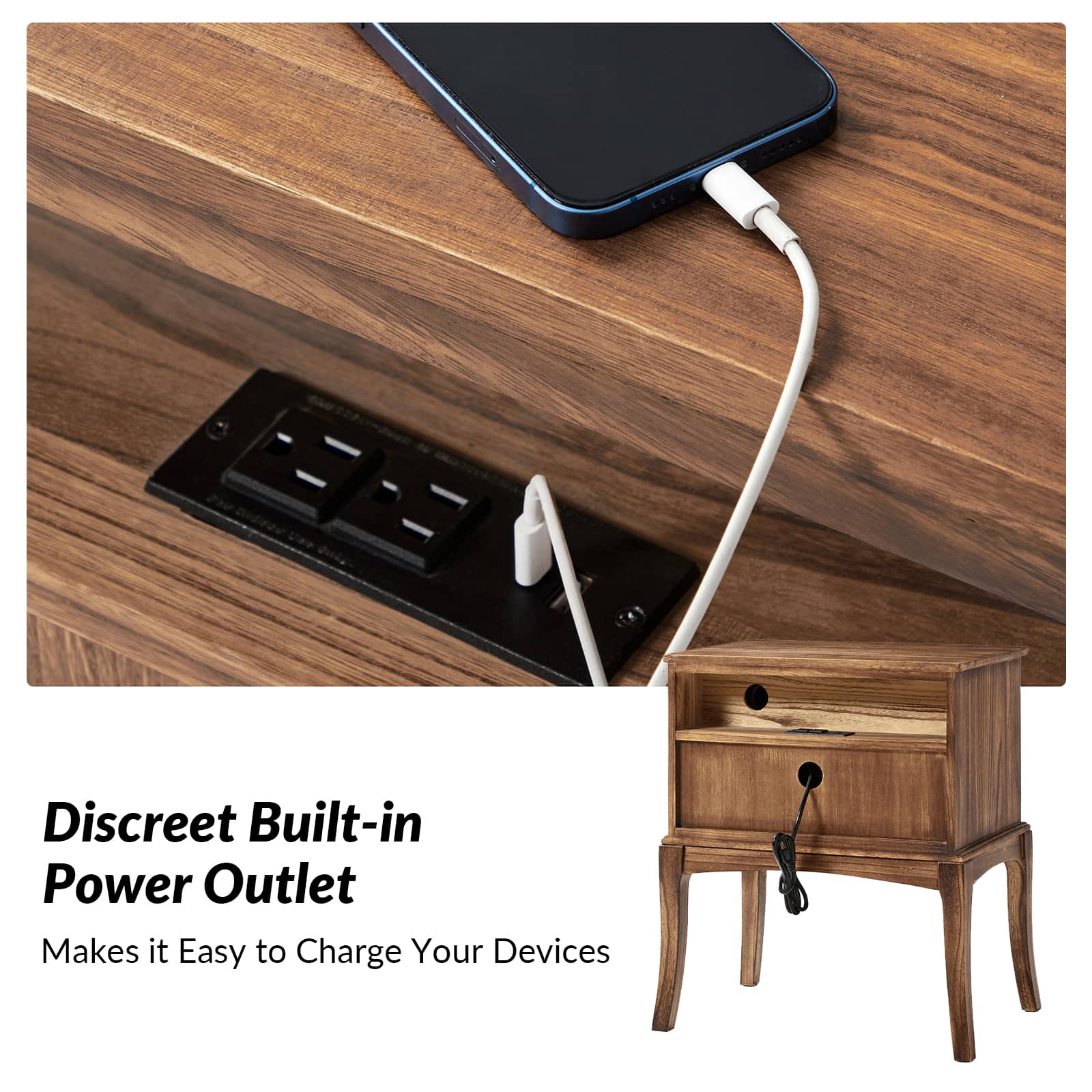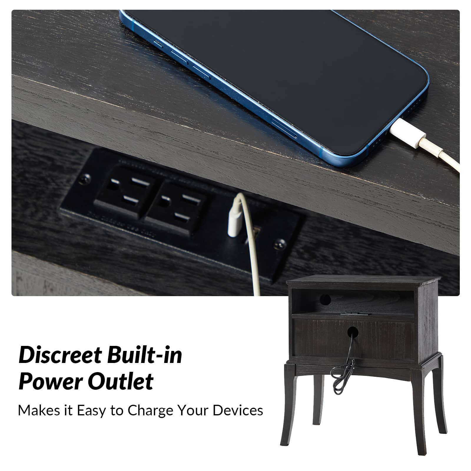 This transitional nightstand is crafted from solid Paulownia wood, offering durability and a timeless aesthetic. Its elegant design features a subtle saber leg base, adding a touch of sophistication and stability to the piece. The nightstand is equipped with two spacious drawers for convenient storage, ensuring that essentials are always within reach. A hidden outlet located behind the top drawer provides a discreet and practical solution for charging devices without cluttering the surface. The natural wood grain and sleek lines create a versatile look that complements both modern and traditional interiors, making this nightstand a suitable addition to your living room or bedroom space.