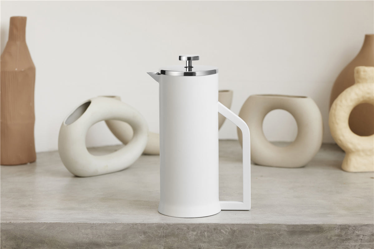 An inventive twist on the classic French press, our Stainless Steel French Press is double-wall vacuum insulated to keep your coffee piping-hot for up to an hour longer than a normal French press. With a similarly sleek appearance to our Glass French Press, the Stainless Steel is a handsome addition to your at-home coffee setup. It offers durability, comfortability, and reliability that will make your first brew last through all those morning meetings.