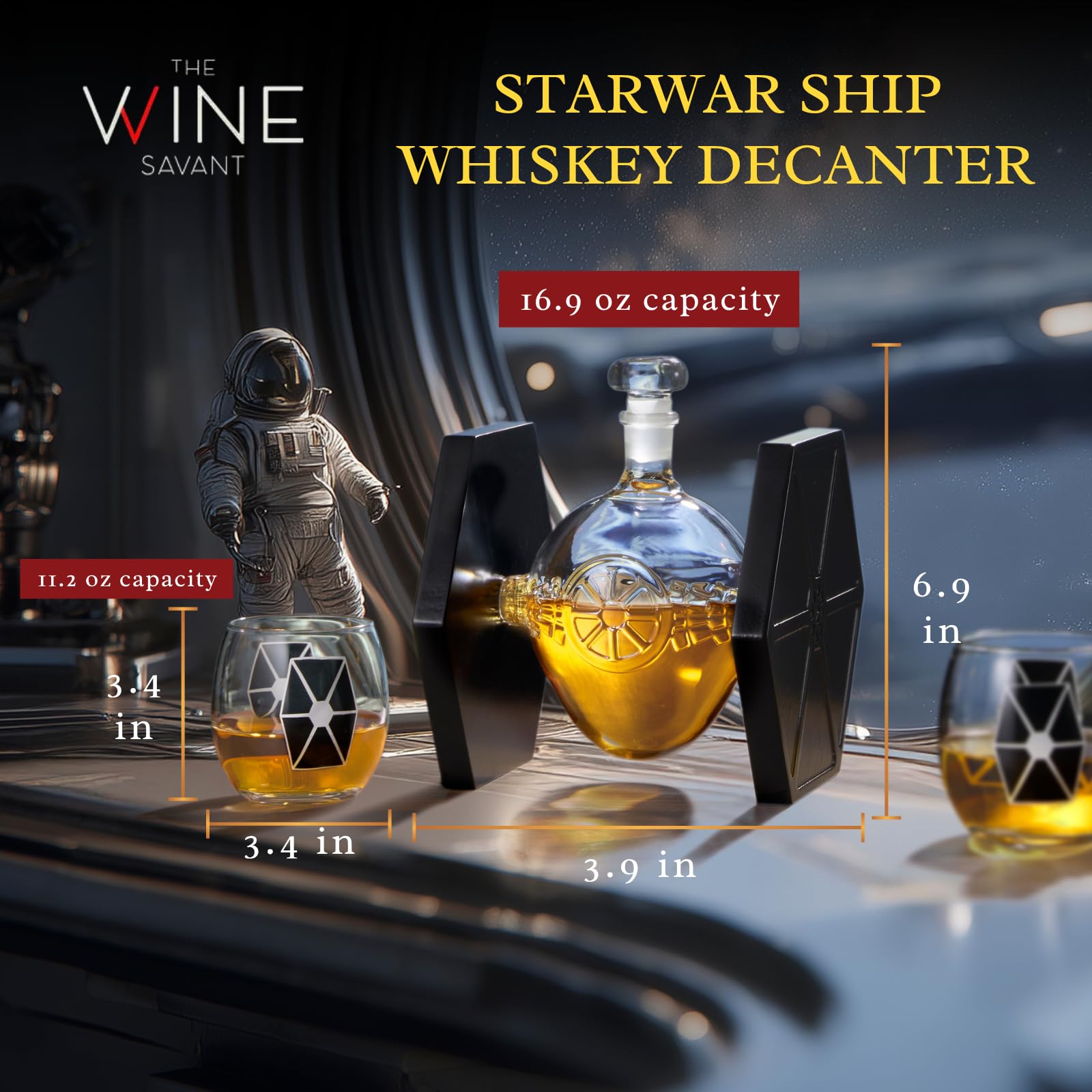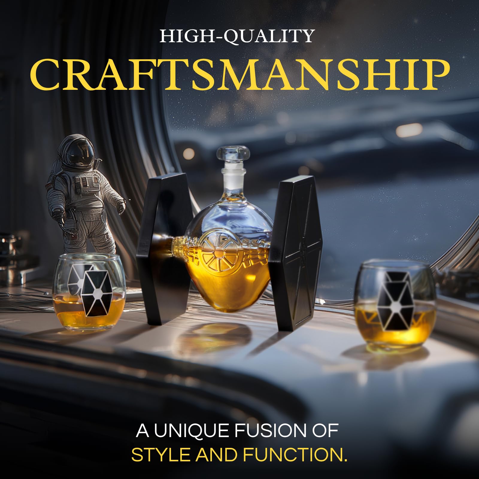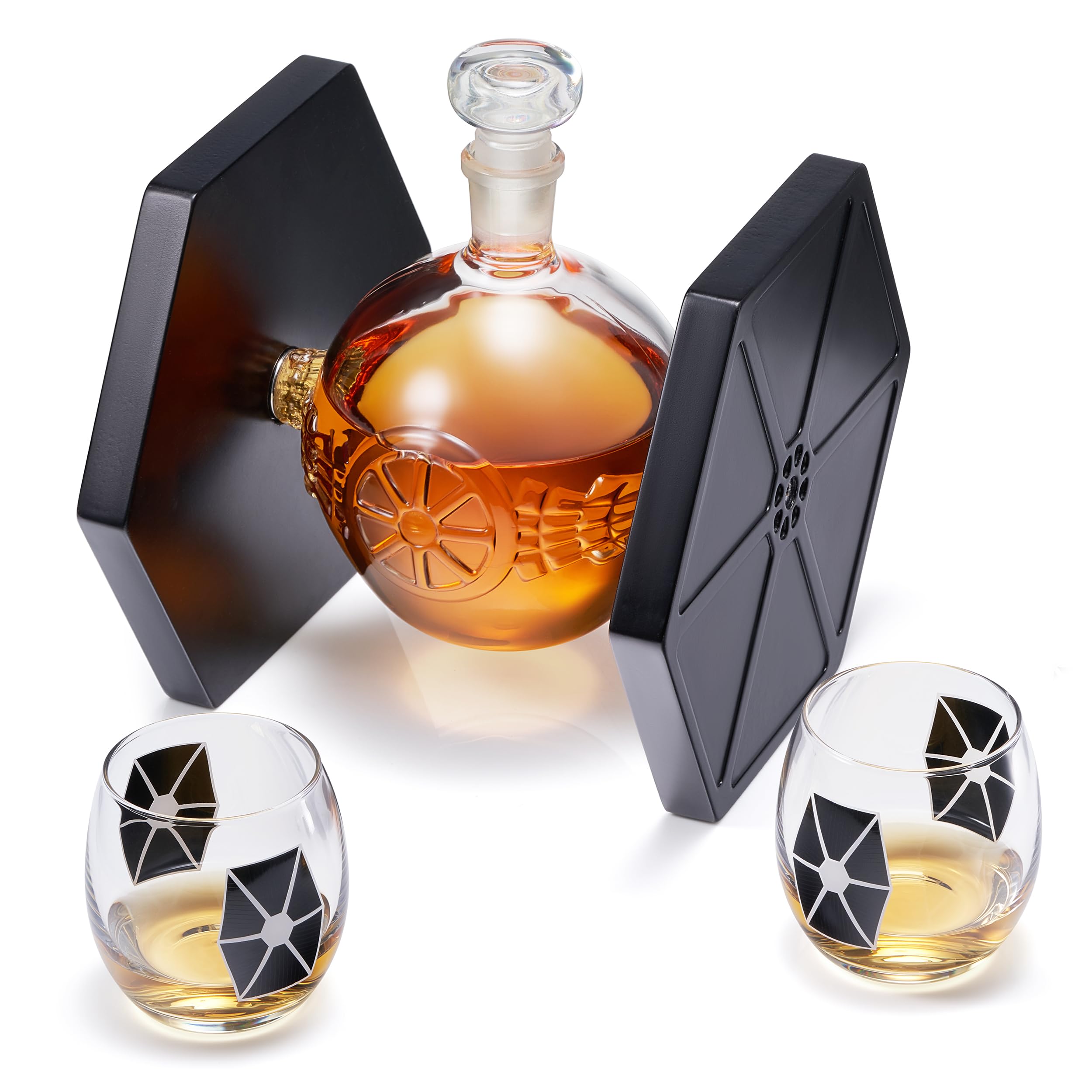 Bring the galaxy to your bar with this Starwar Ship Decanter, a fan favorite among collectors and sci fi lovers. Featuring a unique design inspired by iconic ships, this collectible liquor holder includes a 16.9 oz transparent bottle and two 11.2 oz matching glasses. Crafted from durable glass, it’s perfect for themed parties, home drink vessel collections, or as geek decor in your office. This modern barware doubles as a novelty display and functional beverage container, making it a standout elegant present for birthdays, anniversaries, or any occasion. Add character to your setup with this stylish and sturdy sci fi barware essential.