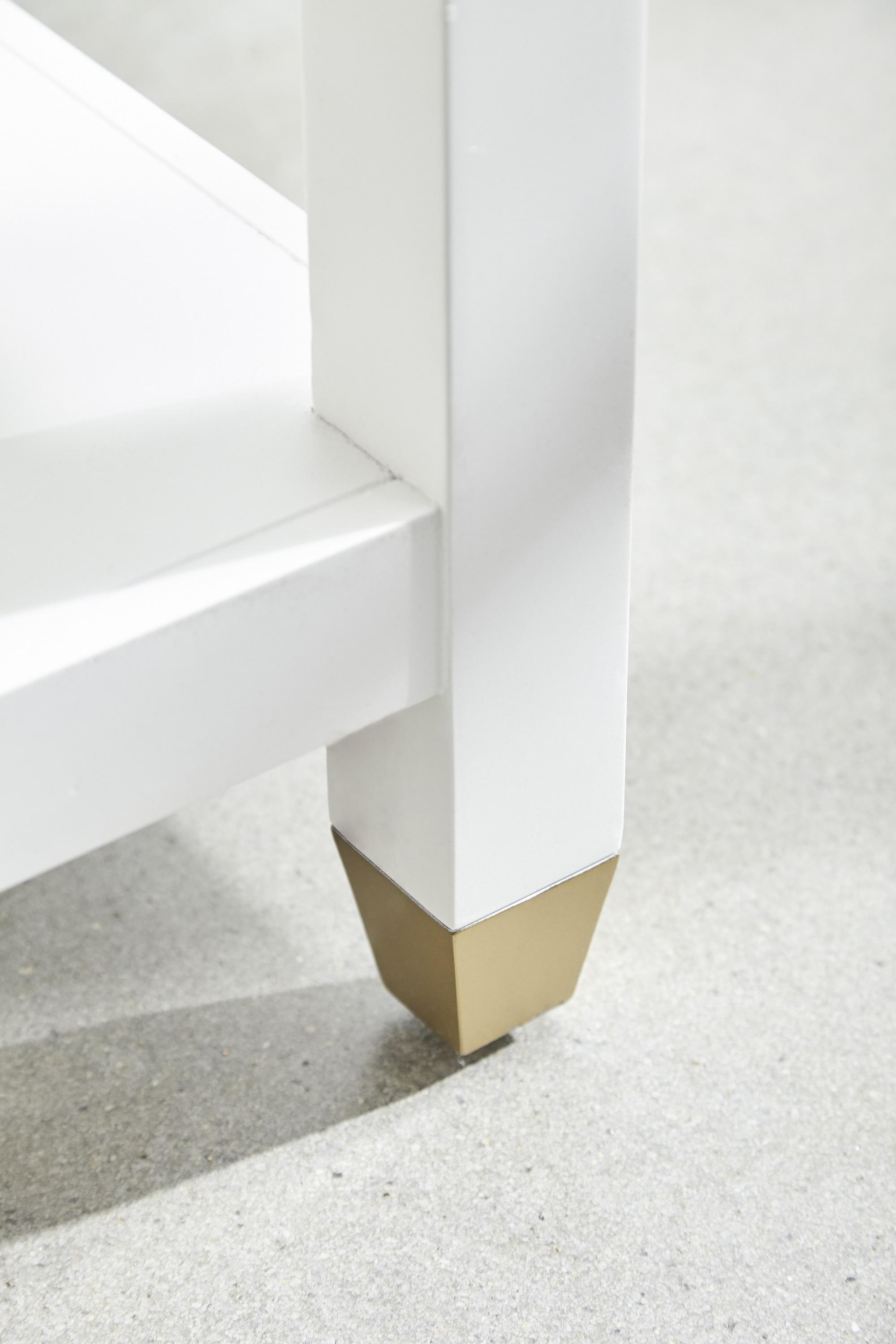 - Hardware Finish: Brushed Brass Handles & Foot Caps