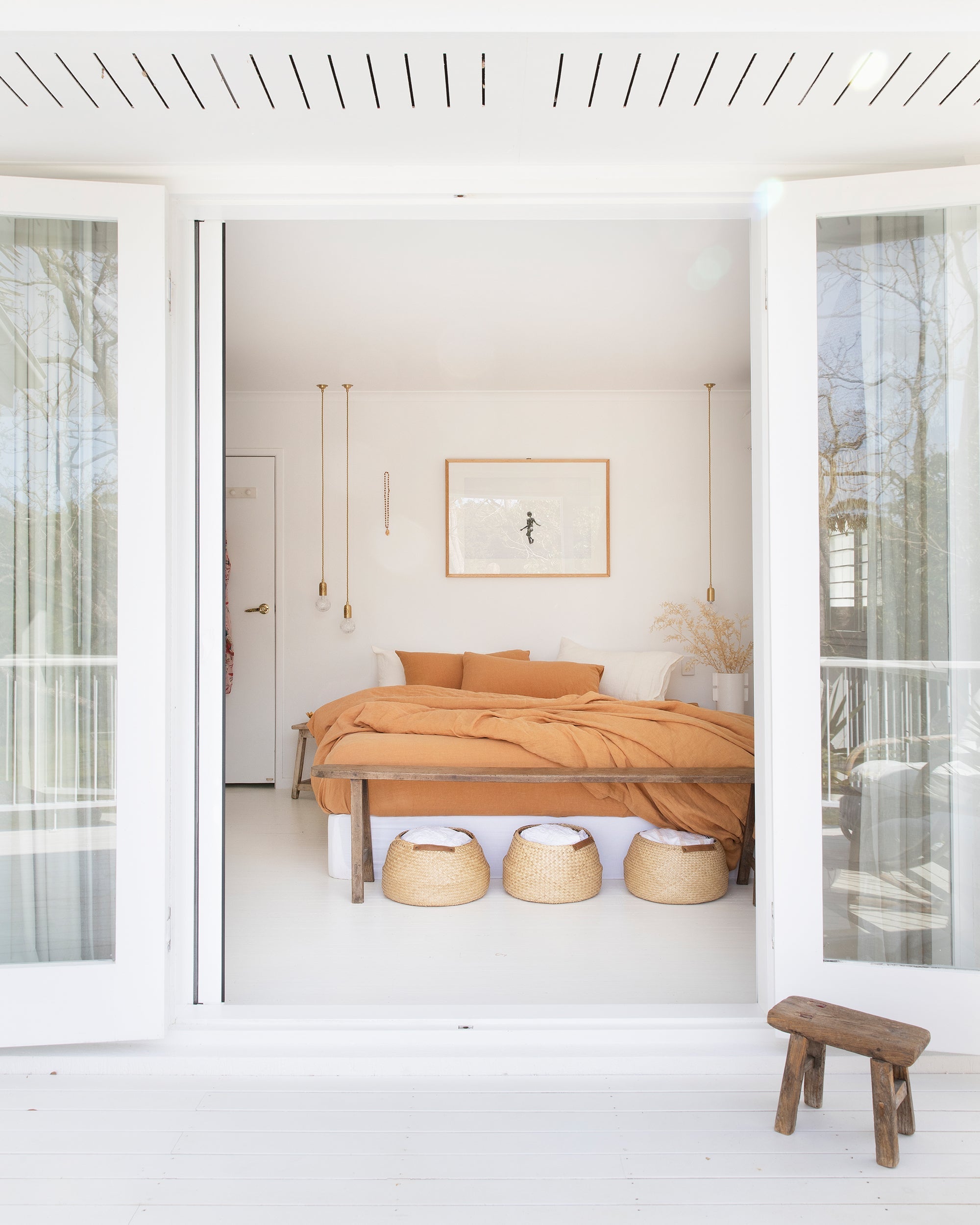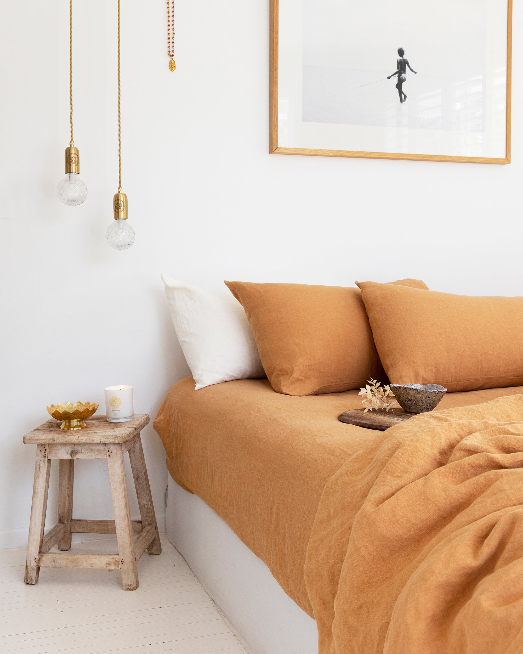 Linen duvet cover set in tan color. Refresh the look of your bed with this linen bedding set featuring a duvet cover and two regular style pillowcases. Our linen duvets are made from wide fabric and do not feature any additional seams in the middle. You can also choose standard, queen, or king pillowcases for your bedding set.