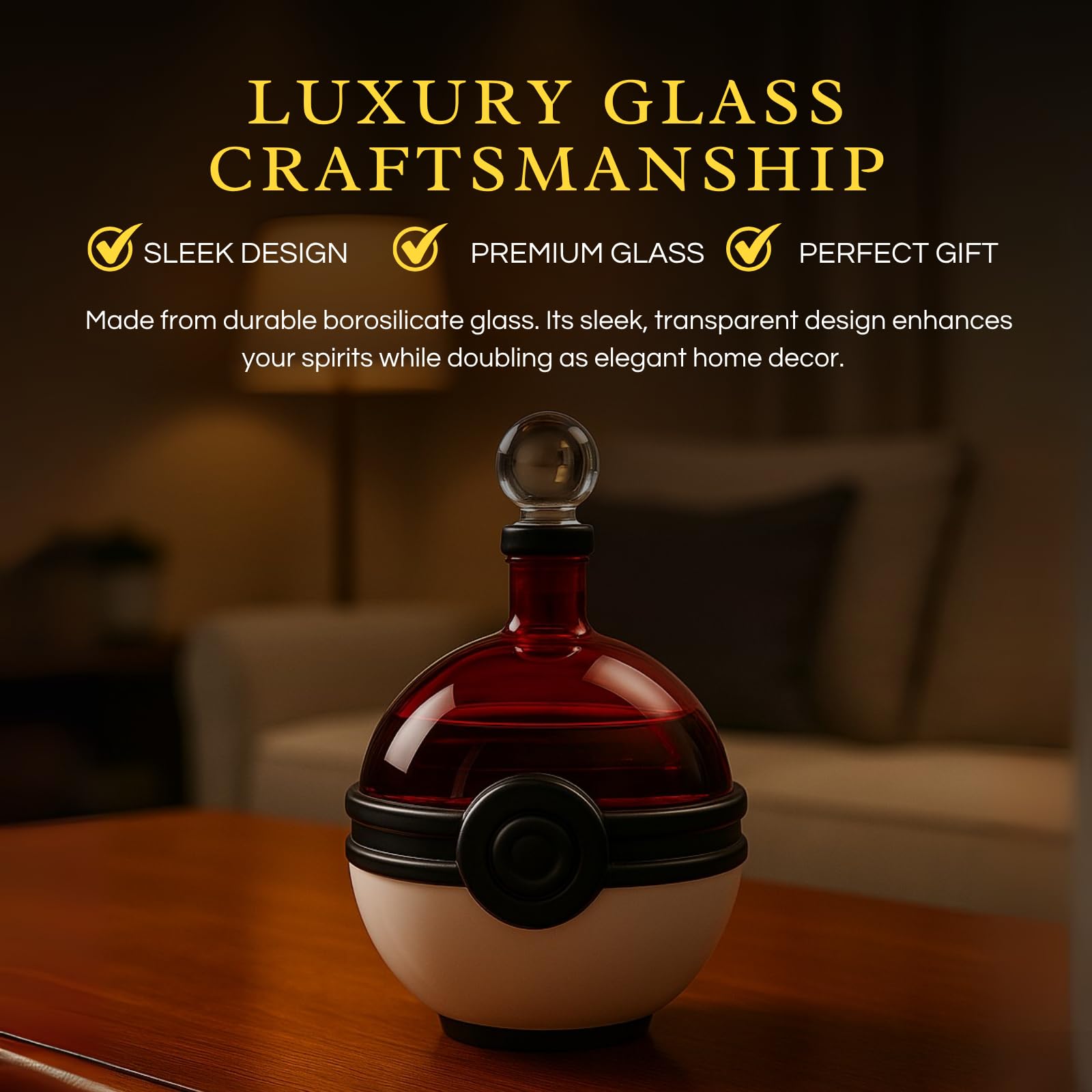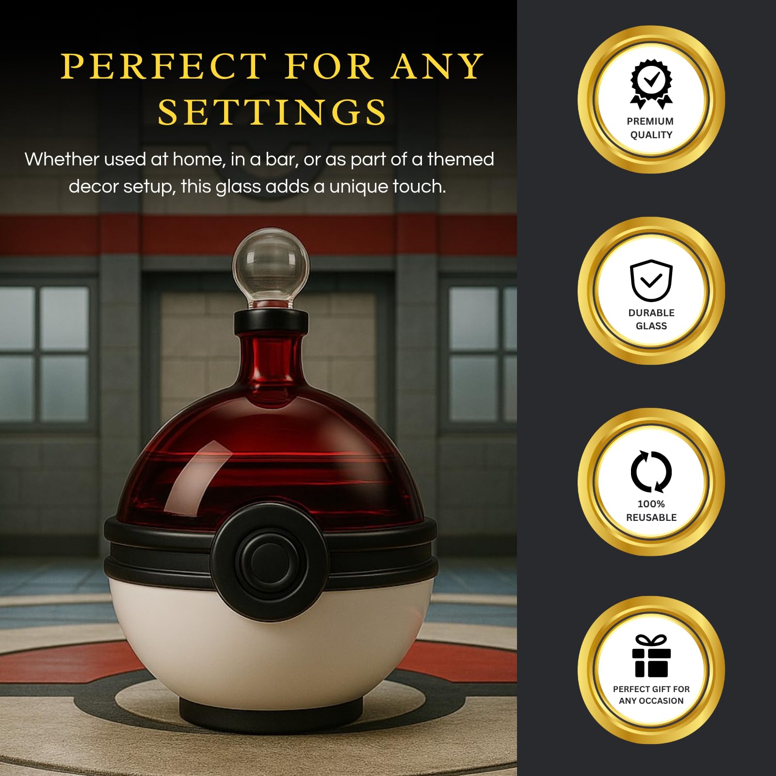 Add a touch of nostalgia and flair to your home bar with the Trainer Battle Ball decanter—a unique barware piece designed for gaming enthusiasts and collectors. This red and white round glass whiskey container doubles as a cool alcohol display and stylish conversation piece. Crafted from high-quality durable glass, it holds up to 18.6 oz of your favorite spirits, making it a functional and decorative liquor holder. Whether you're searching for a nerdy gift idea, geek drinkware, or gaming themed party decor, this novelty home accessory checks all the boxes. Perfect as a collectible bottle or centerpiece, it brings charm and personality to any space. Impress guests and elevate your drinkware game with this standout piece of stylish, themed craftsmanship.