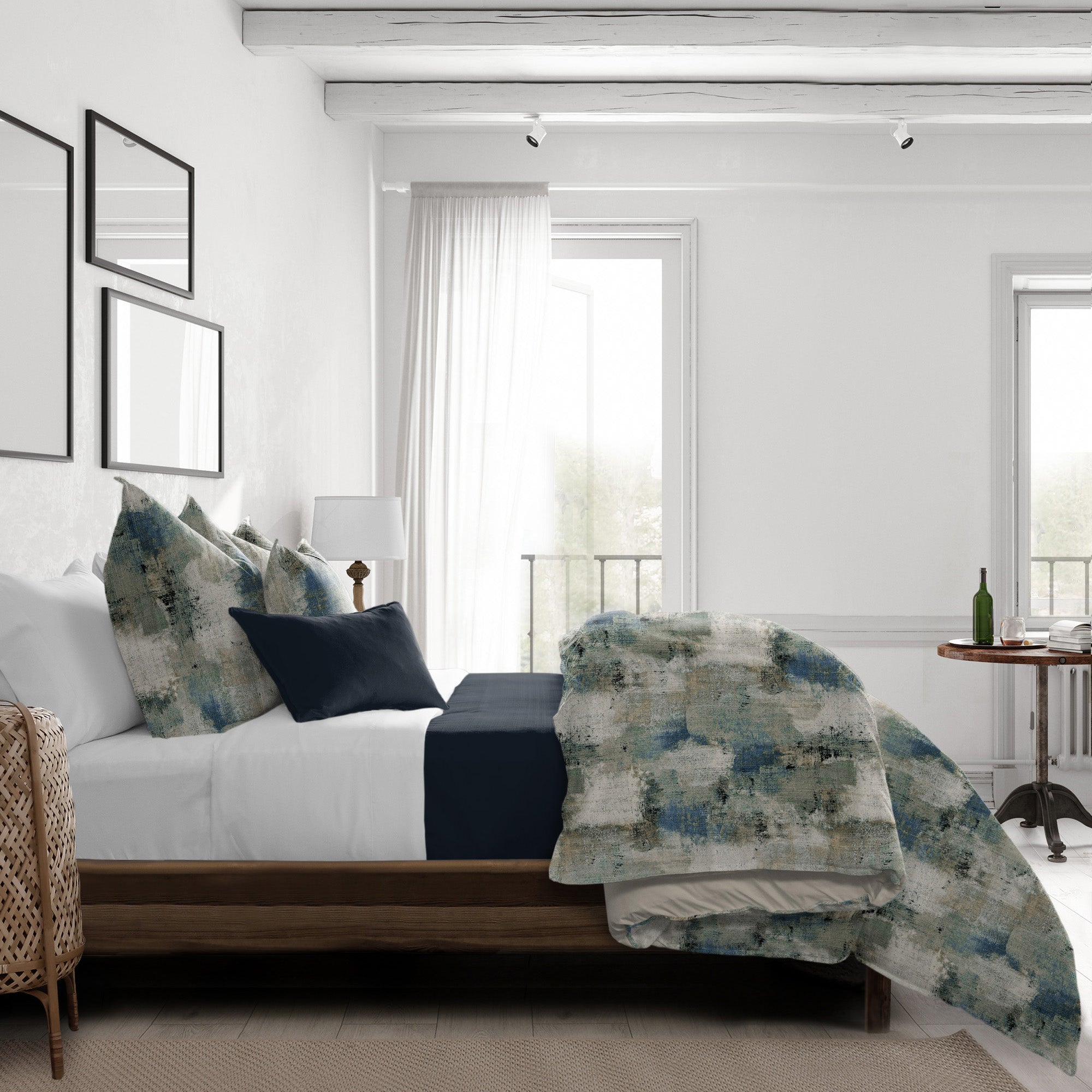 Thiago Linen's broad abstract paint strokes are a fresh, bold take on contemporary art. Shades of dark denim, alabaster, and taupe intertwine and create a collage of color and texture. Featured on a woven linen blend backdrop, Thiago Linen is truly a modern classic.