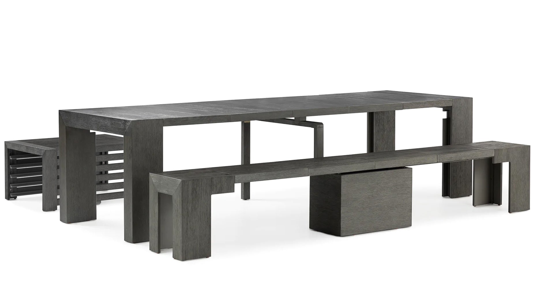 The Transformer Dining Set - The Practical offers the perfect blend of style and functionality. This versatile dining table set includes a one-of-a-kind wooden extendable dining table and an expandable dining bench, comfortably seating between 2 to 12 people. From family dinners to holiday hosting, this extendable dining table set has all the makings to become a centerpiece in your home for years to come.