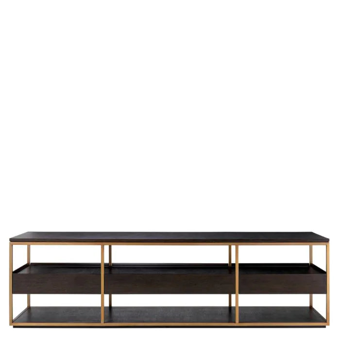TV Cabinet Parker L Mocha straight oak veneer | brushed brass finish