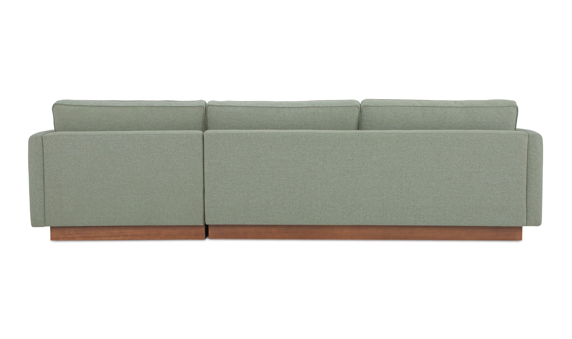 The Vernon sectional blends mid-century design with modern functionality. It features a wooden plinth base for an elevated, lighter appearance. This sectional offers unmatched comfort with removable cushions. Upholstered in durable, OEKO-TEX and Green Guard-certified fabric, it is ideal for family living, combining everyday practicality with durability.